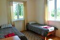 В номере 3 односпальные кровати и дополнительное место, вешалка для одежды, зеркало, стол и стулья. Номер подойдет для небольшой семьи с детьми.