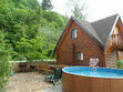 В коттедже на первом этаже: открытая терраса с дубовой мебелью, гостиная-столовая (обеденный стол, 6 стульев, кухонная мебель, плита, холодильник, микроволновая печь, набор посуды), зона отдыха с диванами, спальная комната (двуспальная кровать), ванная комната.