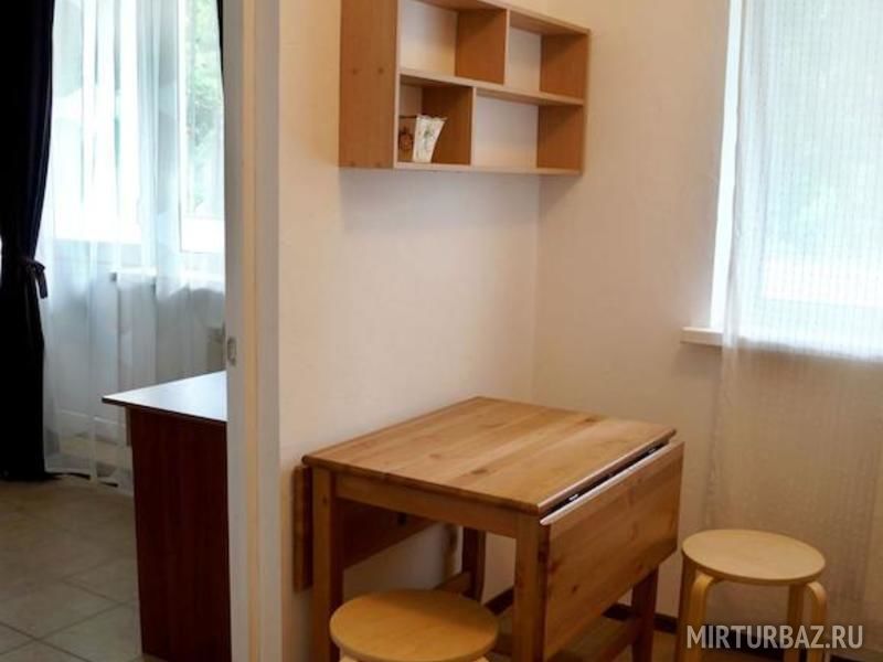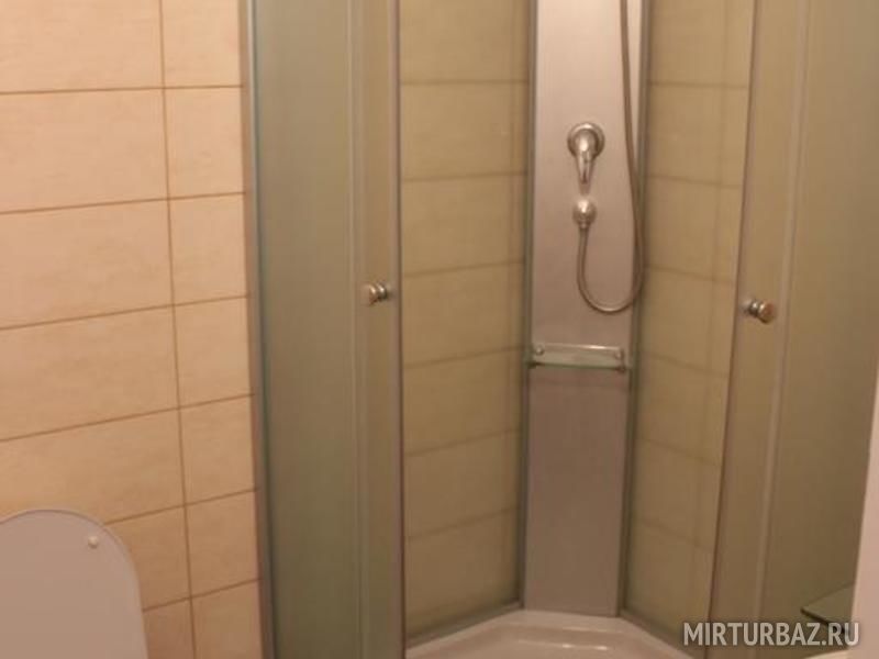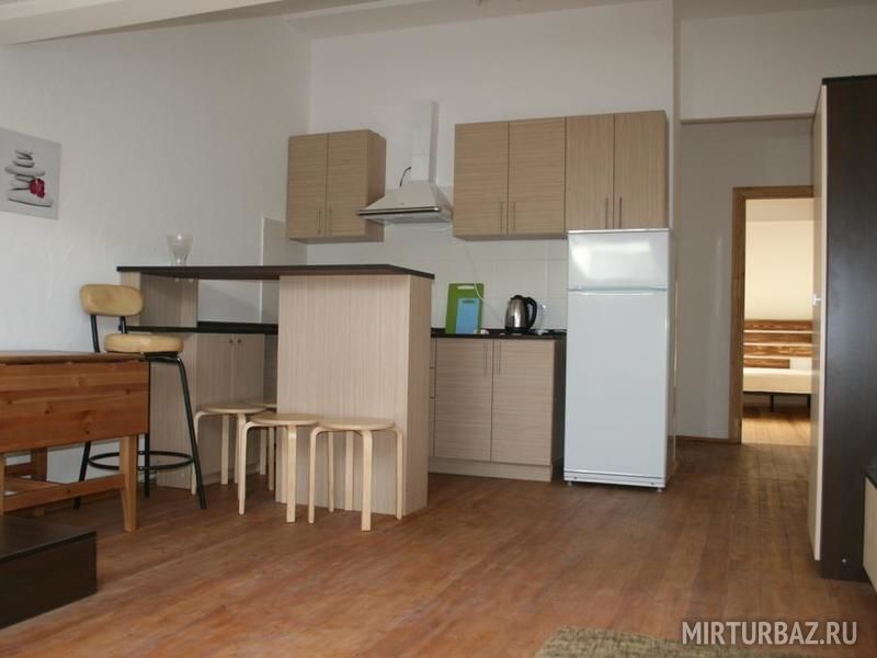 В апартаментах есть большая кухня-гостиная с барной стойкой и санузел с душем.