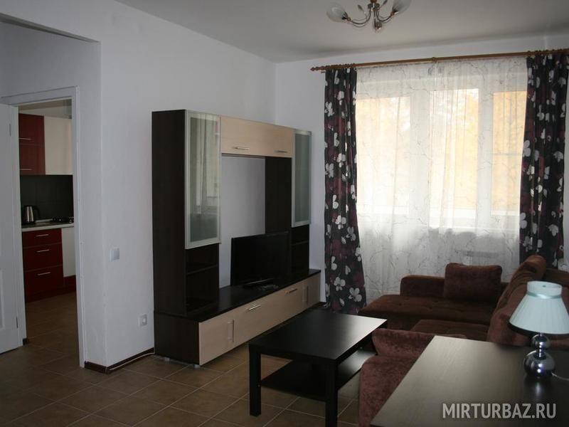 В гостиной - диван, раскладывающийся на 2 спальных места. В апартаментах есть балкон, кухня и санузел с душевой кабиной.