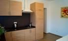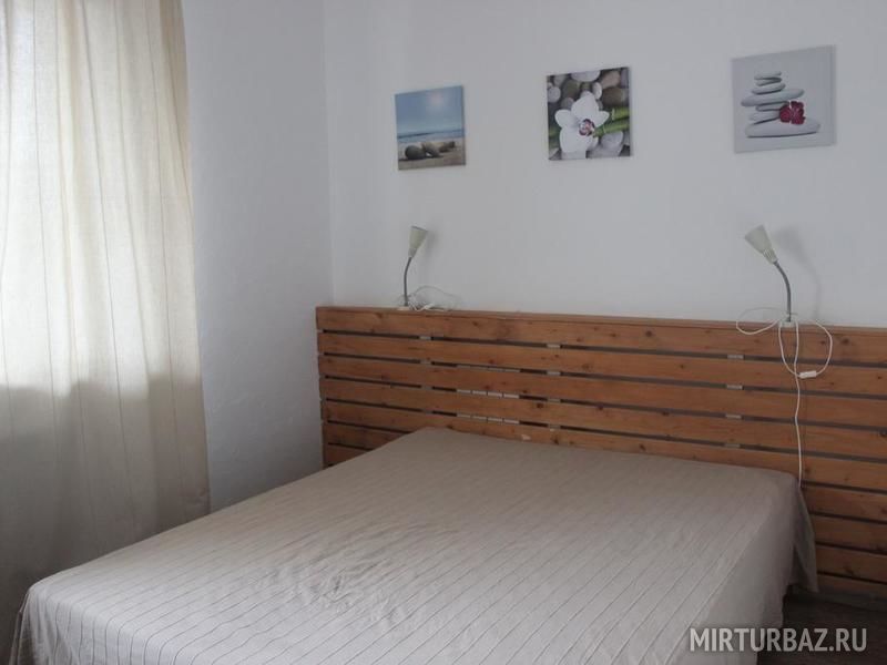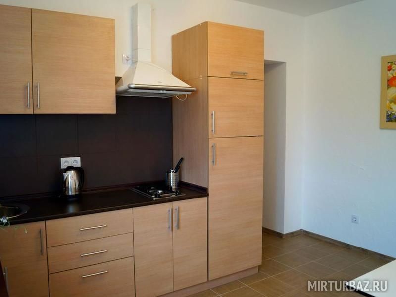 В спальне - большая двуспальная кровать. В апартаментах есть балкон, небольшая кухня и санузел с душем.