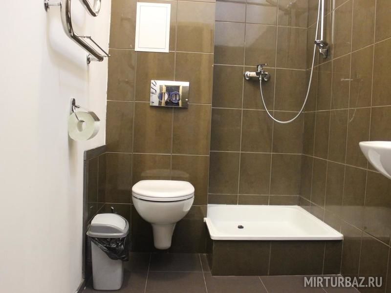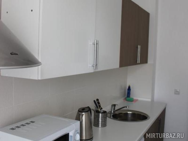 В апартаментах есть балкон, небольшая кухня и санузел с душем.