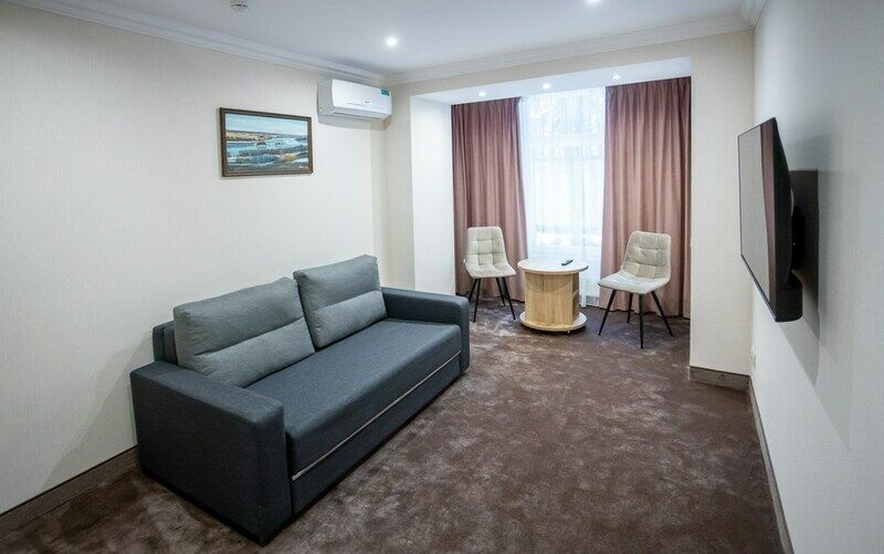 Современный однокомнатный номер для комфортного размещения одного или двух гостей. Номер оснащен кондиционером, Wi-Fi, бытовой техникой.