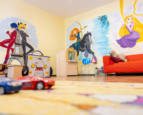 В распоряжении маленьких гостей уютная и яркая детская комната, в которой есть всё необходимое для игр и творчества под руководством опытного воспитателя. Вместе веселее рисовать, лепить и изготавливать поделки на память.