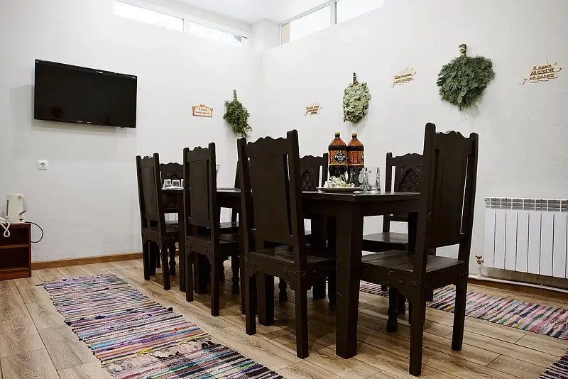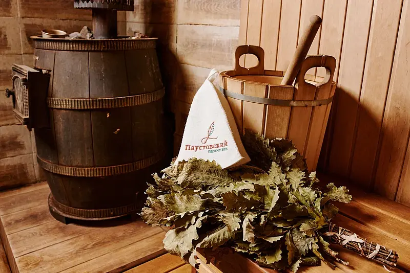 Инфраструктура: бассейн, зона отдыха, полотенца, простыни, обливное ведроТемпература парения: 50 °CМинимальное время аренды: 2 часаВремя работы: до 23В парк-отеле «Паустовский» вас ждет истинное наслаждение в русской бане на дровах, где каждая деталь продумана для вашего комфорта. Просторная парная соседствует с уютным бассейном и предлагает обливное ведро для тех, кто жаждет освежающего контраста. Здесь вы сможете расслабиться в столовой зоне с телевизором, наслаждаясь атмосферой покоя и уединения.