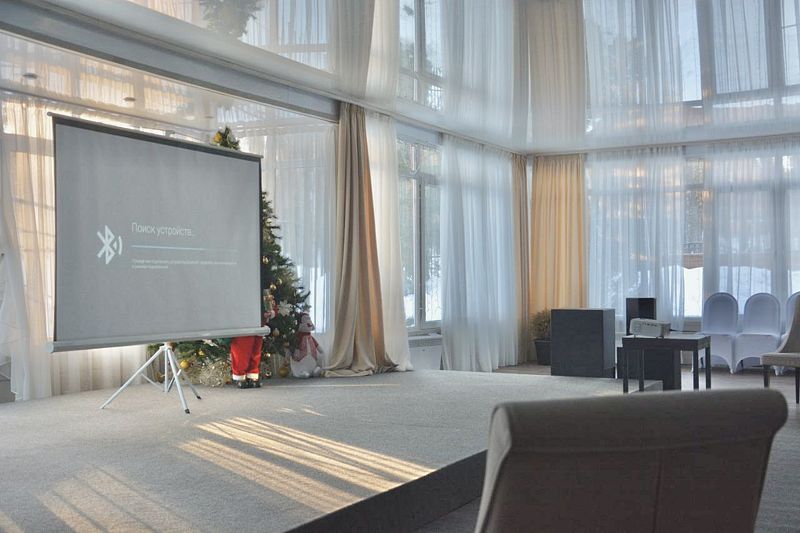 Современное оборудование, установленное в зале, позволяет донести информацию до каждого участника. Зал оснащен акустическими системами, обеспечивающими высокое качество звука.