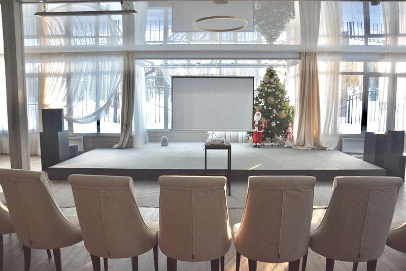 Общая площадь зала составляет 100 квадратных метров, а его вместимость — до 100 человек.