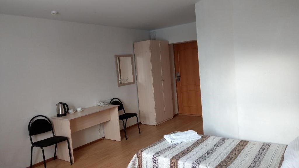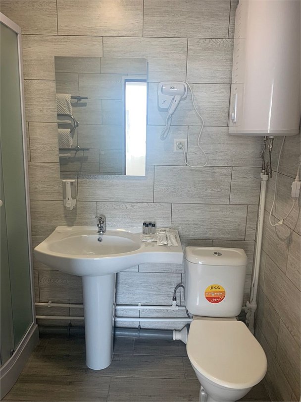 спутниковое телевидение, Wi-Fi, светильник, фен, обогреватель, водонагреватель, две односпальные или большая двуспальная кровать, тумбы, стулья, шкаф для одежды, зеркало, чайный набор, чайник, унитаз, раковина, душ, стул, стол, внутренний телефон, телевизор с плоским экраном, фумигатор, услуги прачечной (платно), вешалки-плечики, бутилированная вода, прачечная (за дополнительную плату), без питомцевВ гостиничном номере