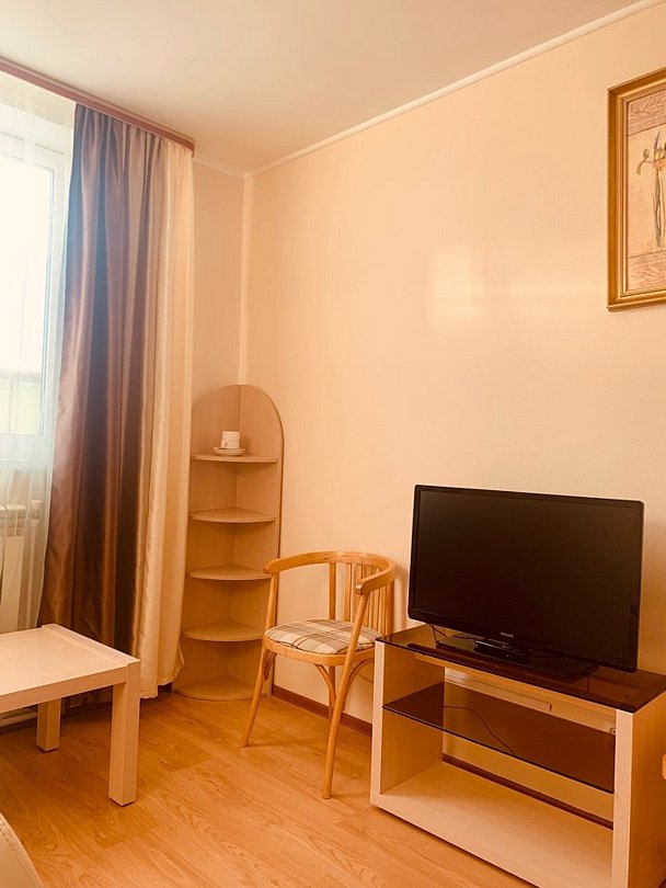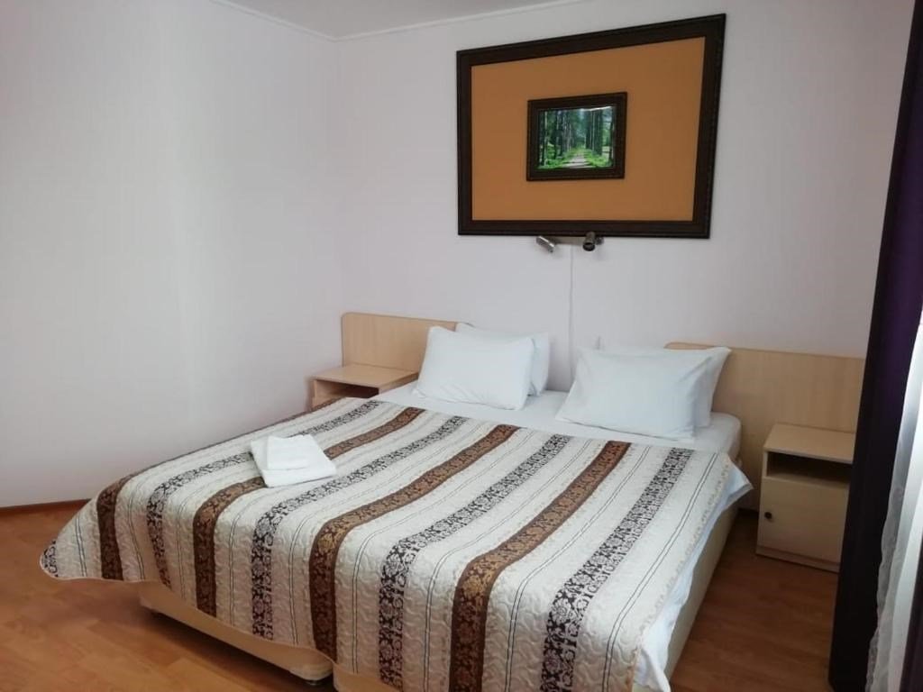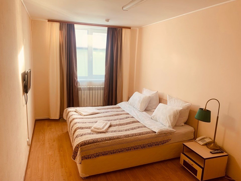 Однокомнатный номер первой категории — уютное и функциональное пространство для комфортного отдыха. В номере предусмотрена вся необходимая мебель: на выбор — две раздельные кровати размером 90×200 см или одна двуспальная кровать; прикроватные тумбочки; рабочий стол; стулья. Для досуга и связи оборудованы: спутниковое телевидение; внутренний телефон; бесплатный Wi‑Fi. Номер сочетает практичность и удобство, создавая идеальные условия как для отдыха, так и для деловой поездки.Услуги и удобства
