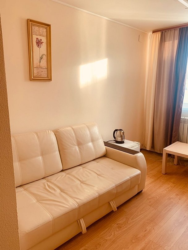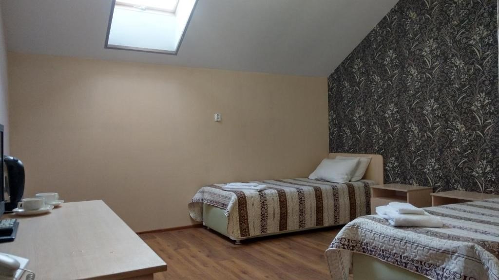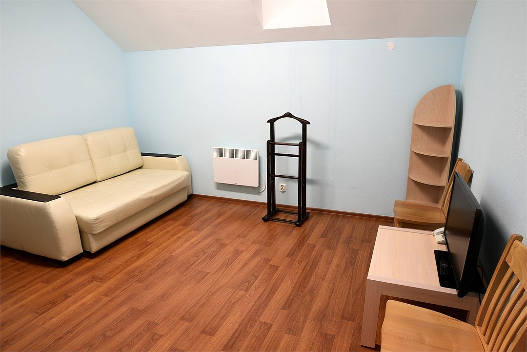 Однокомнатный номер первой категории, находящийся на мансардном этаже — уютное и функциональное пространство для комфортного отдыха. В номере предусмотрена вся необходимая мебель: на выбор — две раздельные кровати размером 90×200 см или одна двуспальная кровать; прикроватные тумбочки; рабочий стол; стулья. Для досуга и связи оборудованы: спутниковое телевидение; внутренний телефон; бесплатный Wi‑Fi. Номер сочетает практичность и удобство, создавая идеальные условия как для отдыха, так и для деловой поездки.Услуги и удобства