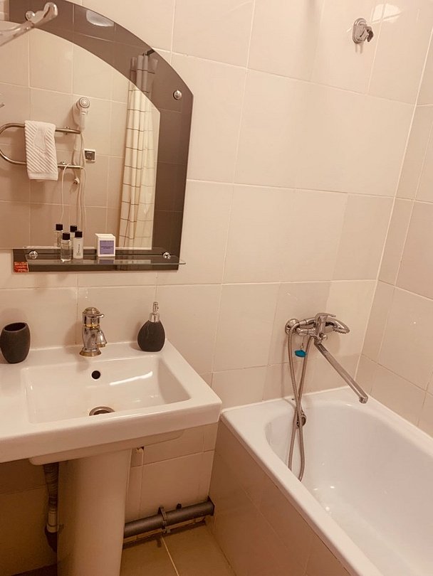спутниковое телевидение, Wi-Fi, светильник, фен, обогреватель, ванна, ванна или душевая кабина, водонагреватель, халаты, банные полотенца, тапочки, косметические средства, две односпальные или большая двуспальная кровать, тумбы, стулья, зеркало, две комнаты, чайный набор, чайник, унитаз, раковина, стол, туалетный столик, диван-кровать, раскладной диван, внутренний телефон, телевизор с плоским экраном, мини-холодильник, шкаф-купе, фумигатор, набор для приготовления чая и кофе, вешалки-плечики, бутилированная вода, затемняющая штора, прачечная (за дополнительную плату), без питомцевВ гостиничном номере
