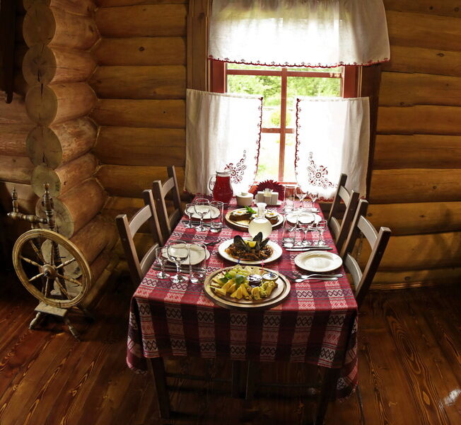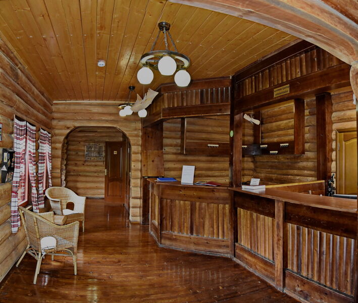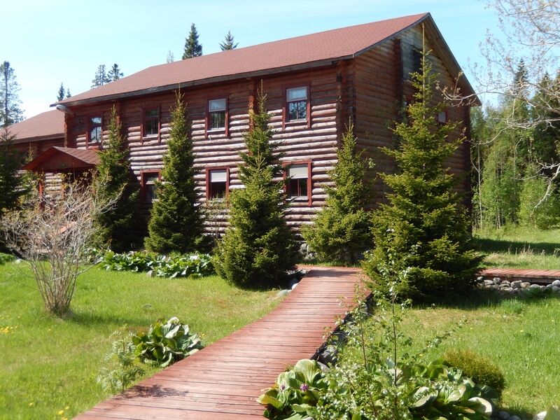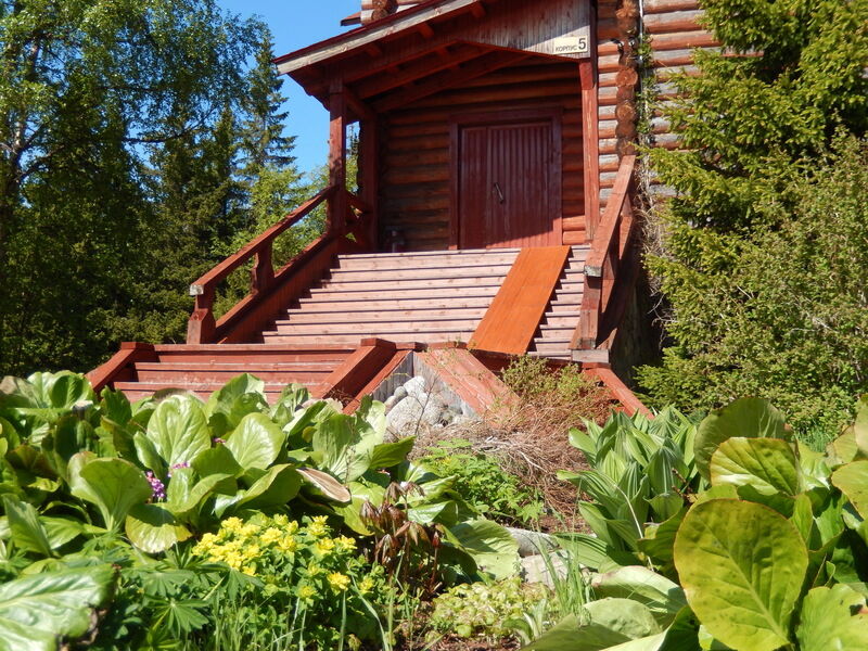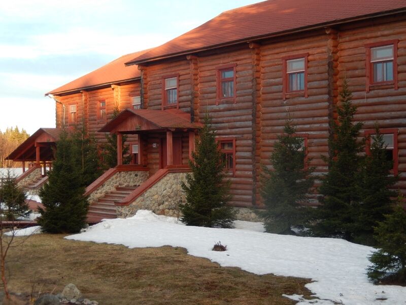 Территория гостиницы - это прекрасный парковый ансамбль, где сочетание раскидистых елей, небольшого пруда и мощеных дорожек и деревянных корпусов, построенных в традициях русского зодчества, дарят возможность наслаждаться северными пейзажами.