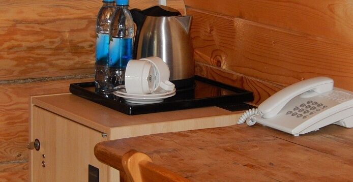 Отель состоит из деревянных корпусов в аутентичном стиле, мы жили в новом корпусе. Номера чистые, уютные и комфортабельные, оснащены всем необходимым для приятного отдыха. В нашем номере были две односпальные кровати, которые оказались очень удобными и мягкими. Постельное бельё было хрустящим, а полотенца менялись каждый день. В ванной комнате была душевая кабина и гигиенические наборы. Шторы блэкаут обеспечивали комфорт для сна.