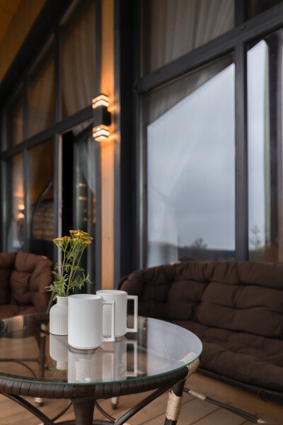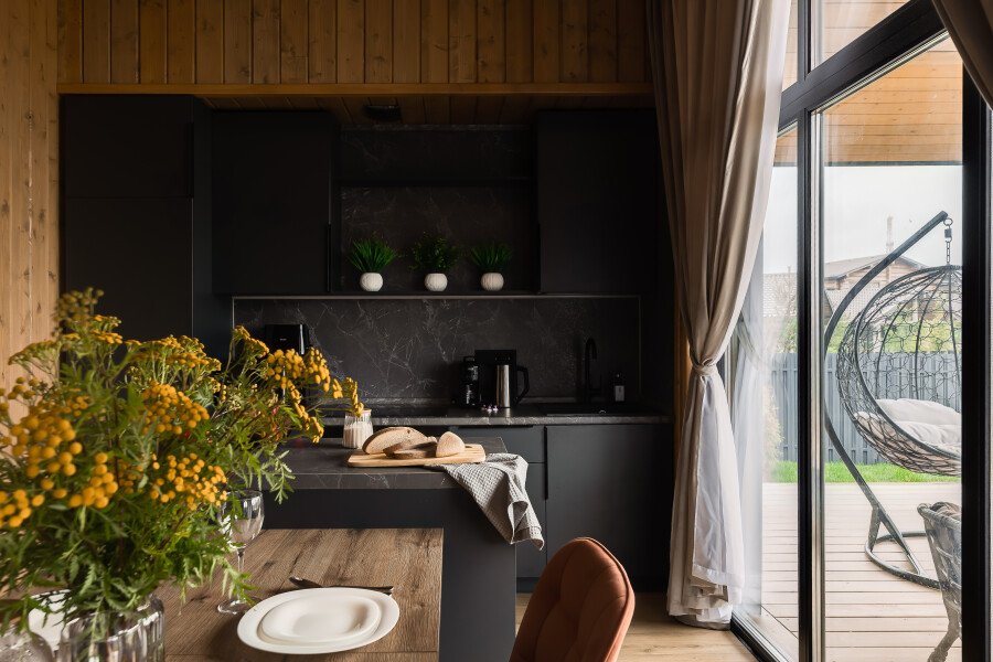 Здесь созданы идеальные условия для приятного отдыха — комфортный интерьер, оснащенный всем необходимым для жизни, и живописная природа вокруг, предлагающая насладиться завтраком на свежем воздухе, созерцанием звездного неба возле потрескивающего костра и спокойствием деревенской тишины.