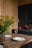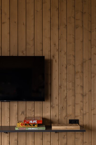 Дом оборудован всей необходимой мебелью и бытовой техникой — духовым шкафом, варочной панелью на четыре конфорки, большим холодильником с морозильной камерой, микроволновкой, посудомоечной машиной, современным телевизором со SMART TV, тремя большими шкафами и сушкой для горнолыжной одежды, кофемашиной для капсульного кофе, шампурами и решеткой для мангала, дровами, углем, спичками для растопки печи или мангала.