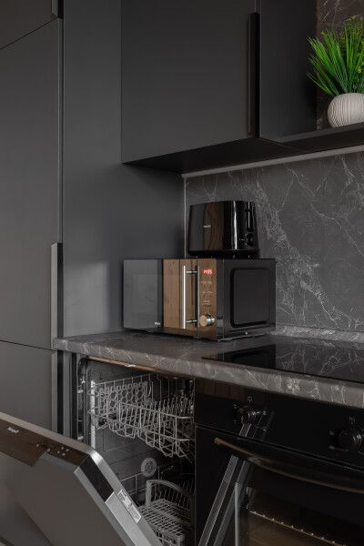 Дом оборудован всей необходимой посудой — тарелками, большим выбором бокалов, стаканами, чашками, всеми необходимыми столовыми приборами, включая штопор, различными кастрюлями, сковородками, дуршлагом и т. д., фольгой, пищевой пленкой, пергаментом, льдом, трубочками для коктейлей и т. д.