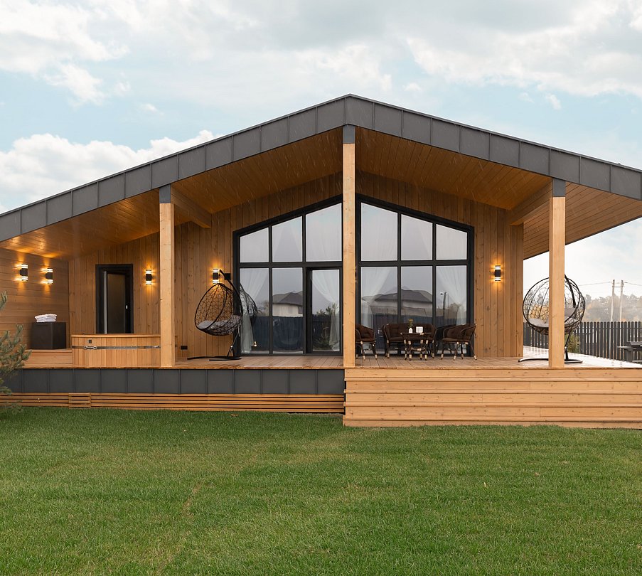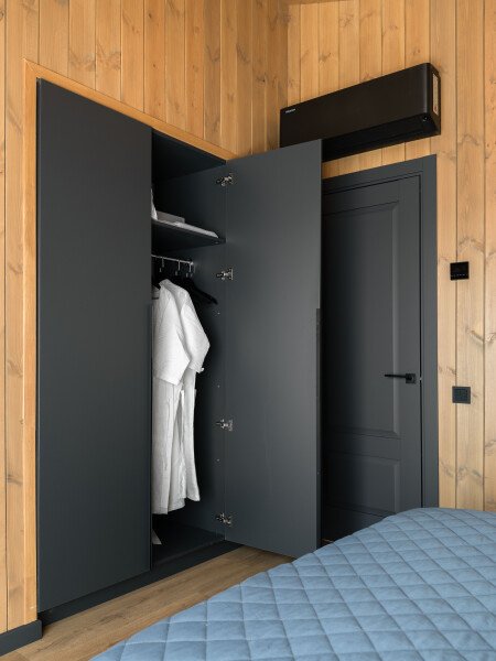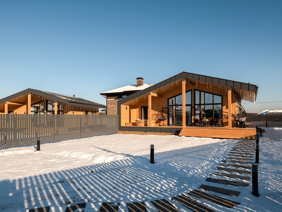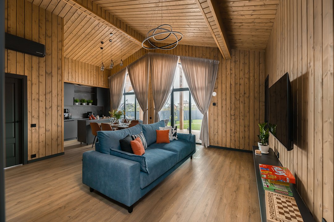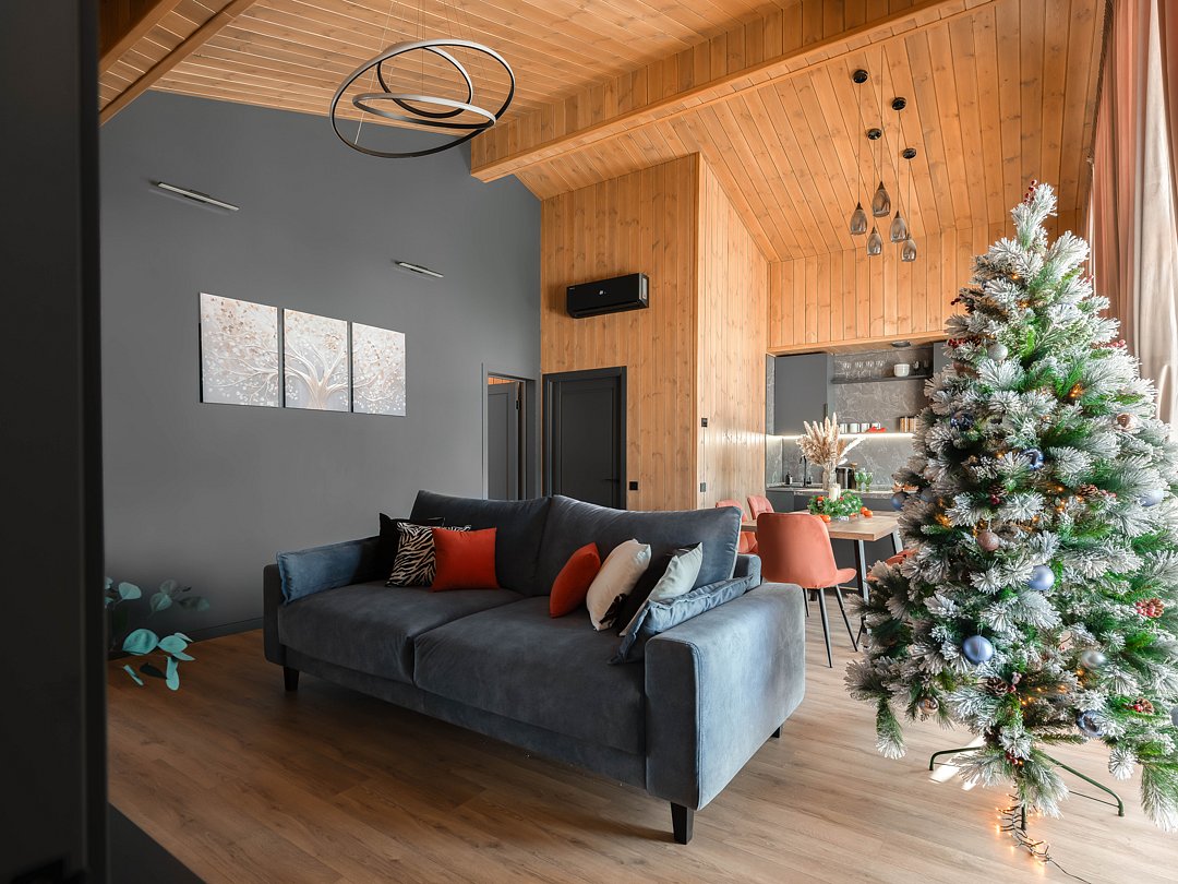 Внутри дома уютные спальные комнаты, просторную кухню-гостиную и два современных санузла. Оснащенный всей необходимой мебелью и бытовой техникой, он создает атмосферу домашнего уюта. Каждое пространство продумано до мелочей: от электрической сауны SАNGЕNS с различными режимами парения до комфортного обогрева и охлаждения благодаря сплит-системам и теплым полам.