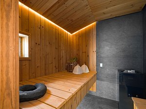 В доме расположена современная электрическая сауна SАNGЕNS, предлагающая разнообразные режимы парения. Это позволяет гостям наслаждаться как уютом финской сауны, так и традиционным русским банным паром, создавая идеальные условия для релаксации и оздоровления.