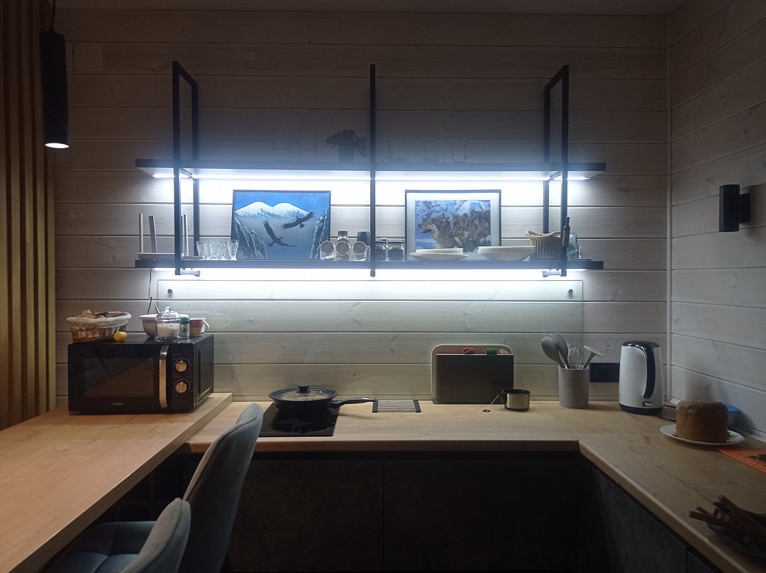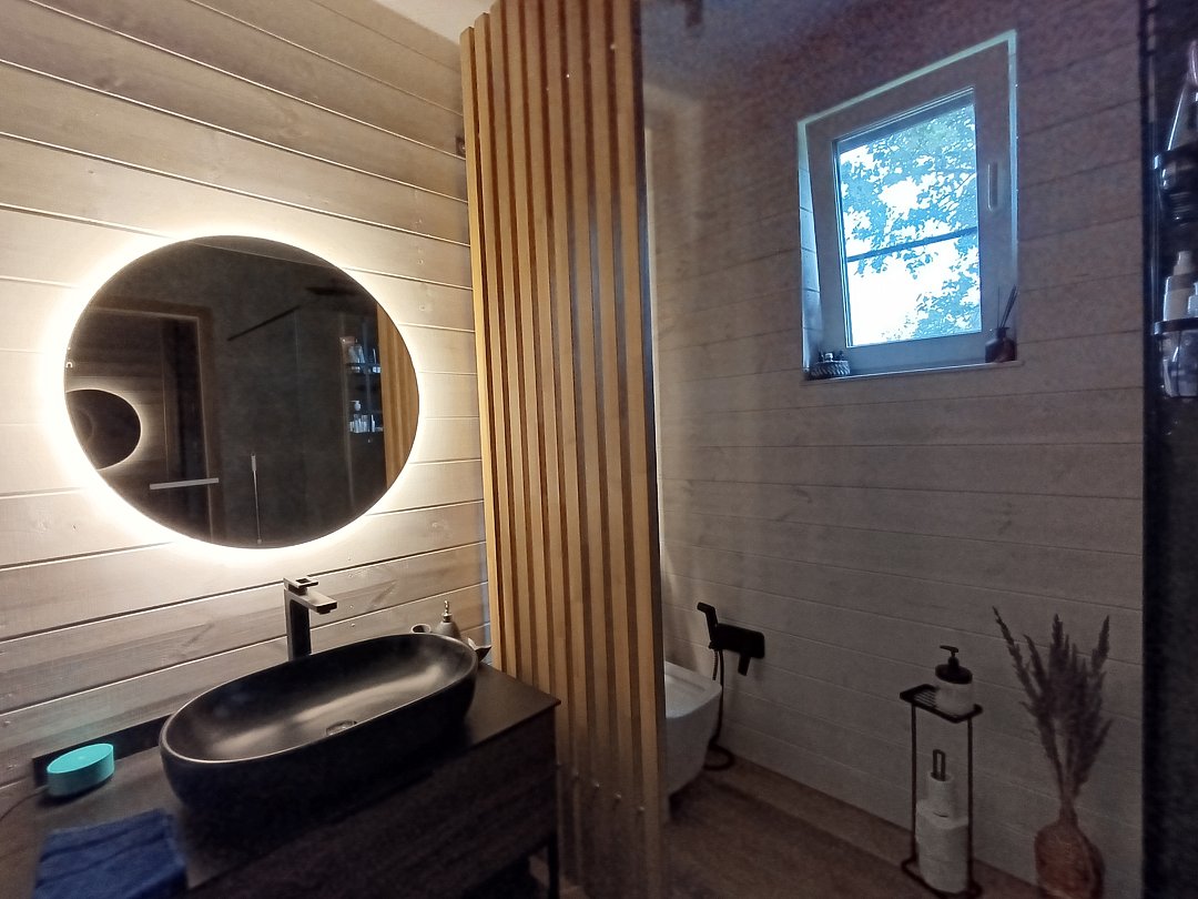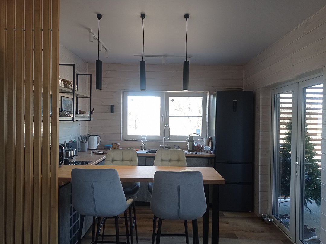В распоряжении отдыхающих будут три изолированные комнаты, большая кухня-гостиная, оснащенная бытовой техникой и набором посуды, удобные спальные места и свежее постельное белье, телевизор и Wi-Fi, современный санузел с душем и гигиеническими принадлежностями. В доме есть баня на дровах и камин.