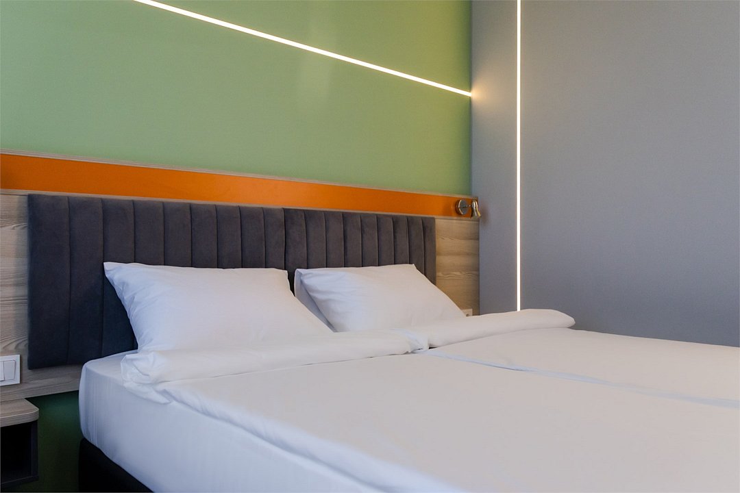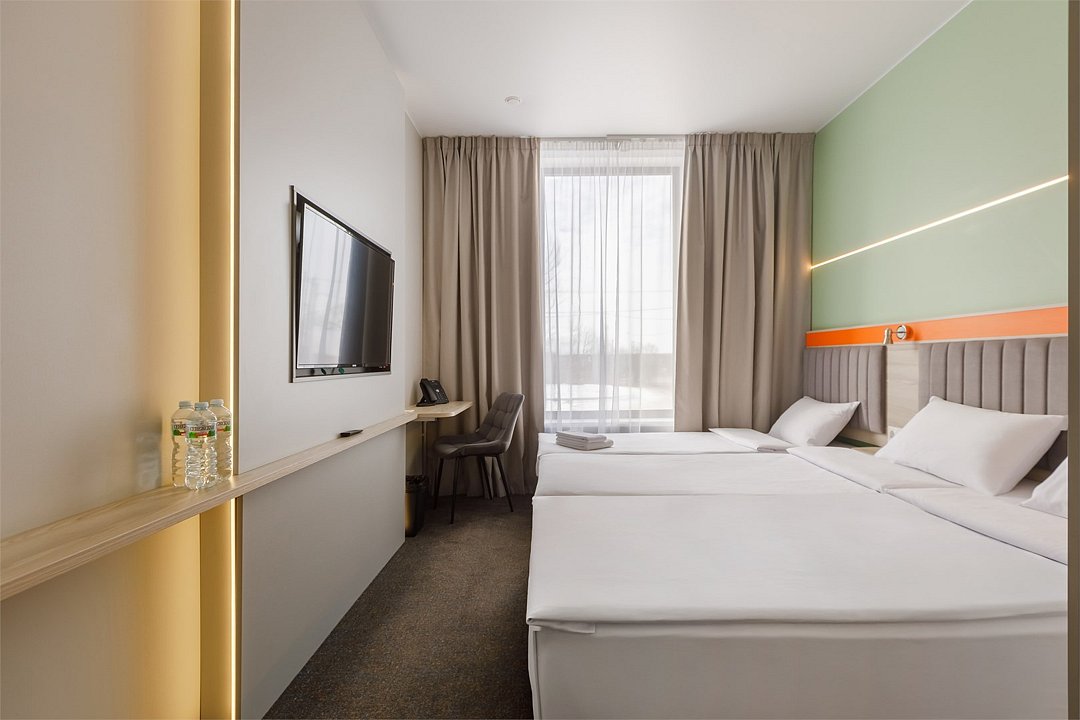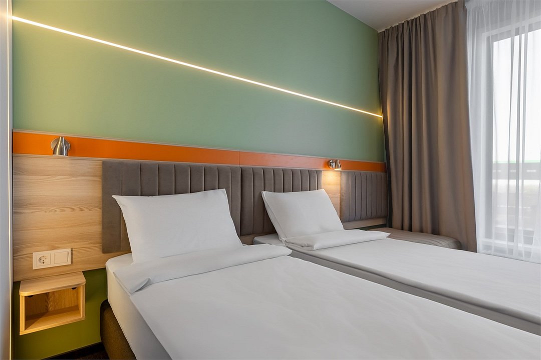 Номер площадью 18 м2 с 2 односпальными кроватями с анатомическим матрасом рассчитан на 2 взрослых и 1 ребенка. Для детей до 5 лет включительно проживание в одном номере со взрослыми предоставляется бесплатно на отдельном спальном месте. По запросу может быть предоставлена детская кроватка (для детей от 0 до 3 лет). В номере: Кровати с ортопедическими матрасами, телевизор, мини-бар, кондиционер, телефон. В собственной ванной комнате есть все необходимое для путешественников: набор полотенец, туалетно-косметические принадлежности, фен. Для комфортного отдыха в номерах используются светонепроницаемые шторы и улучшенная звукоизоляция. Доступ к высокоскоростному интернету и рабочий уголок позволяют оперативно и комфортно решать рабочие вопросы.Услуги и удобства