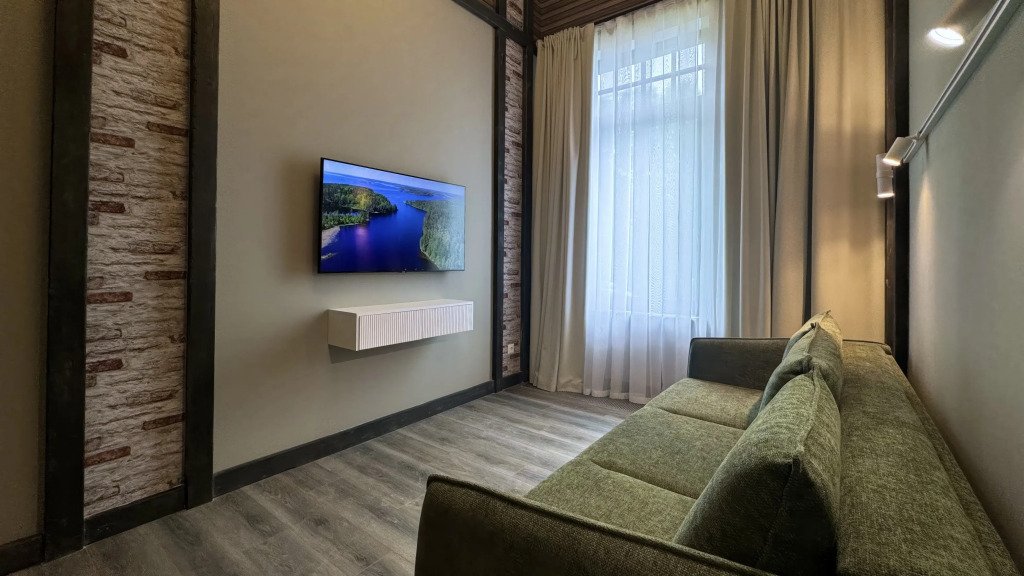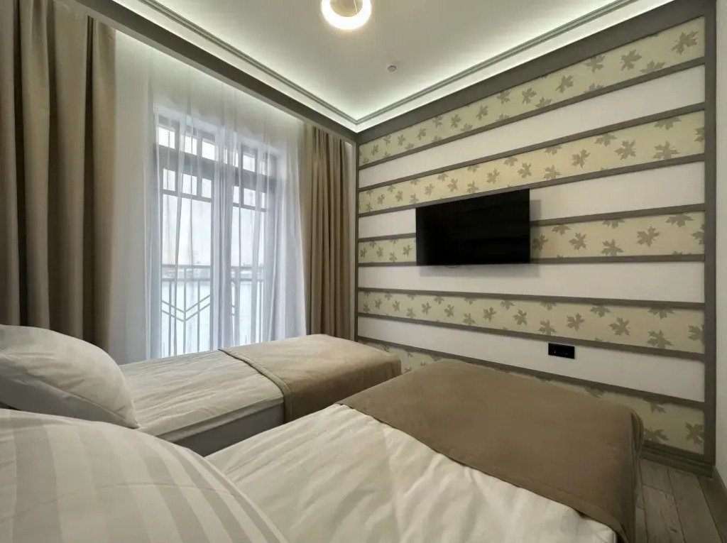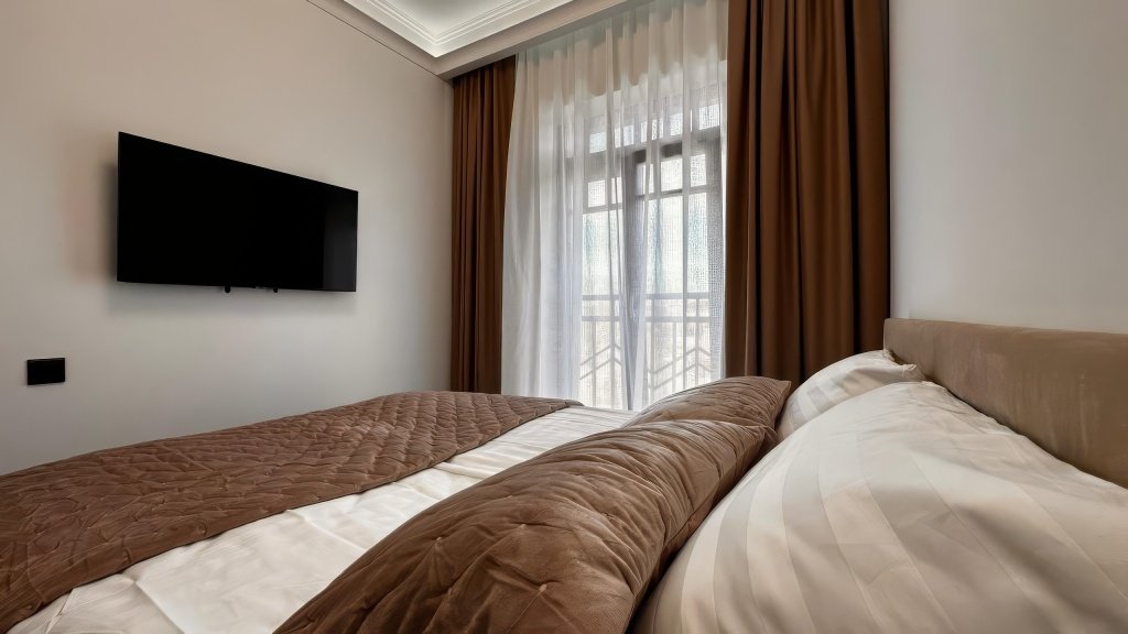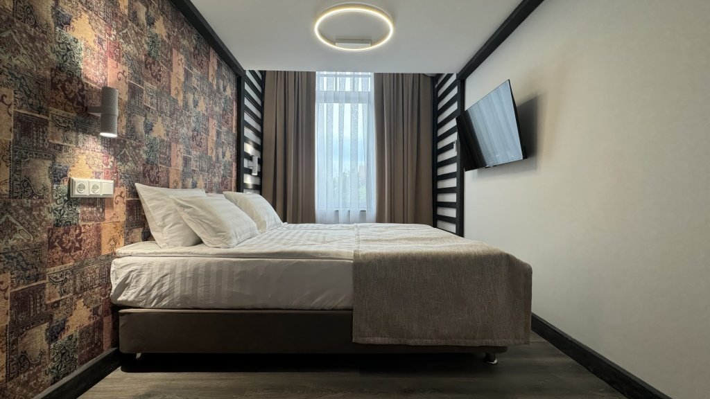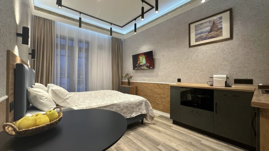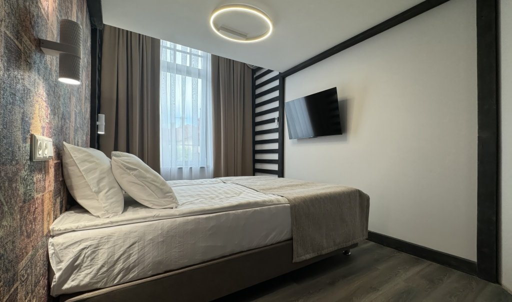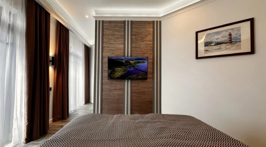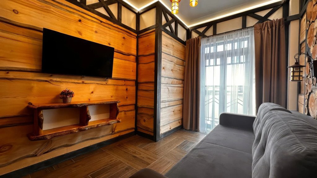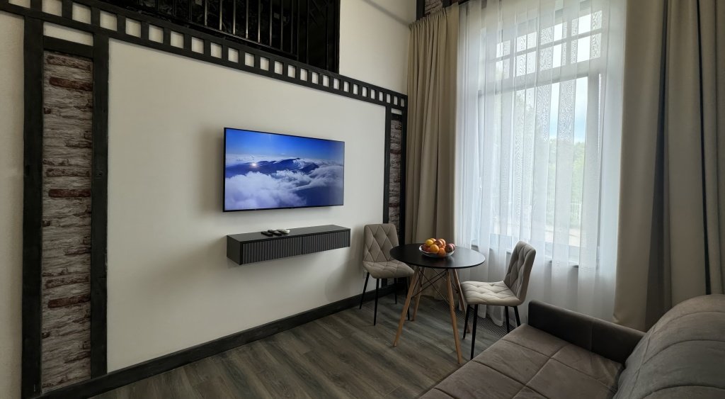 В номере гостей ждут телевизор и халат. Оснащение зависит от выбранной категории номера.