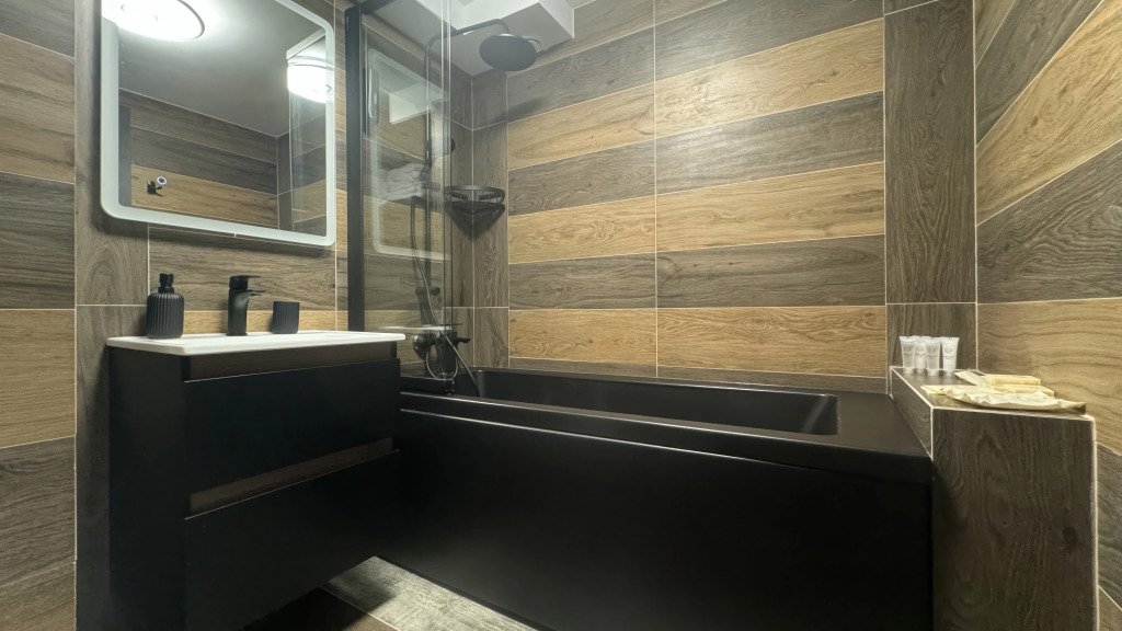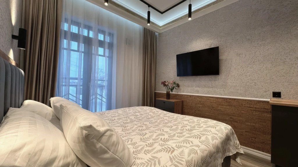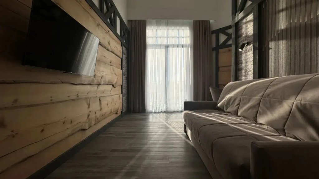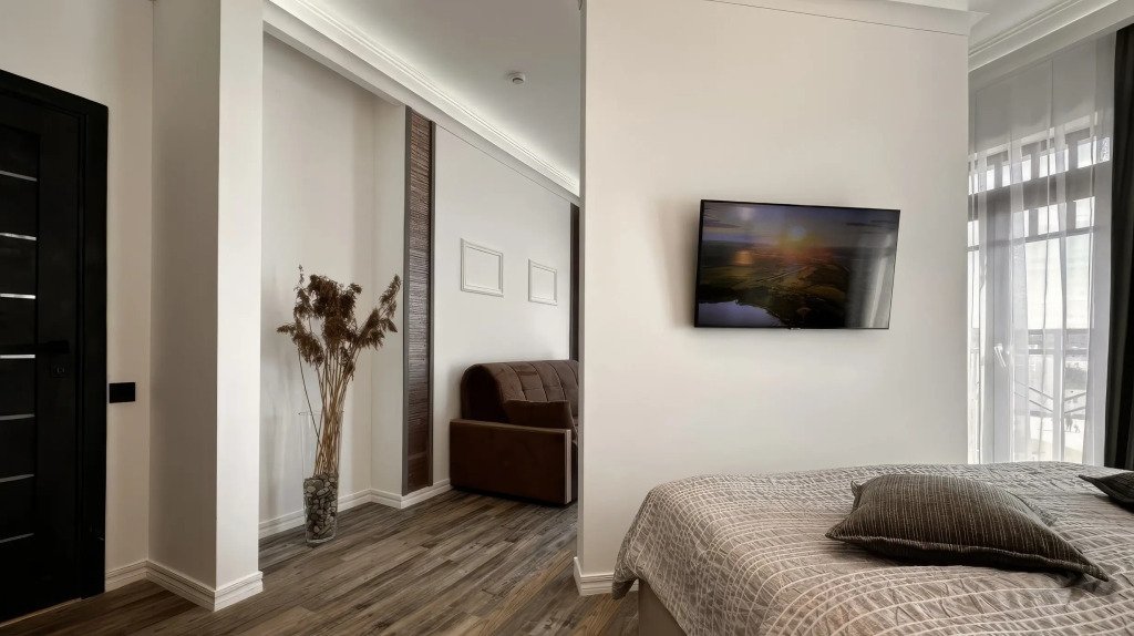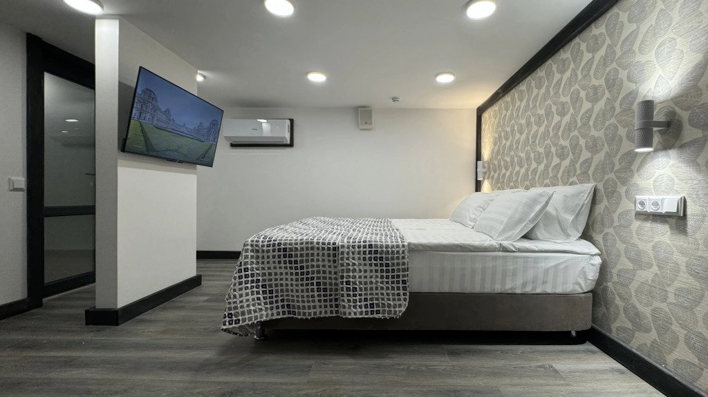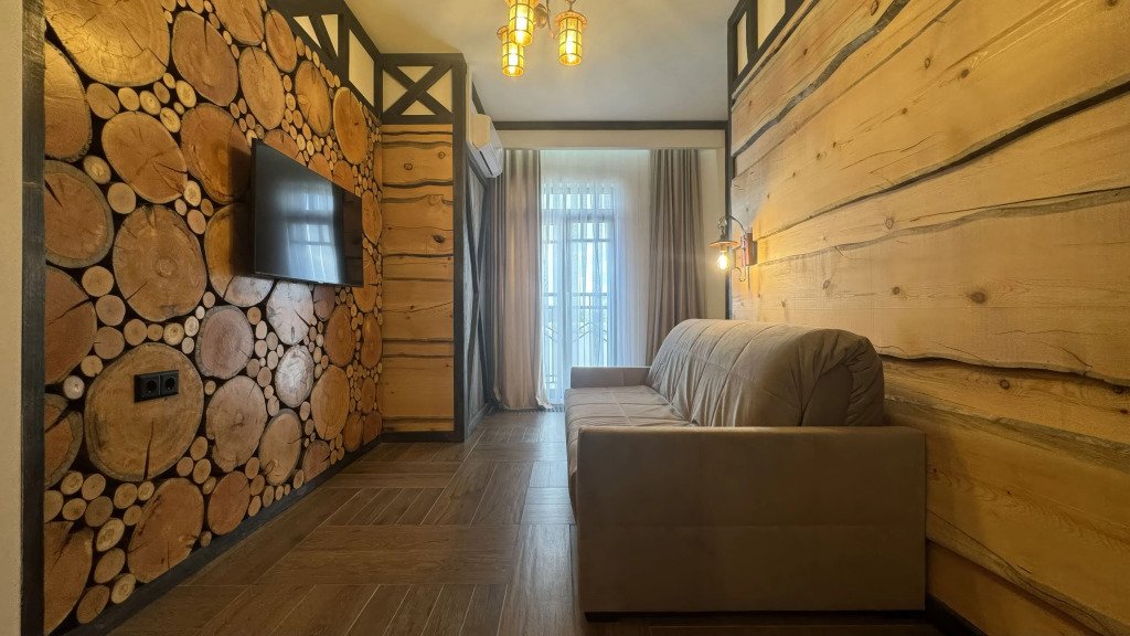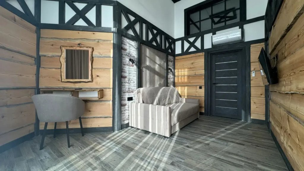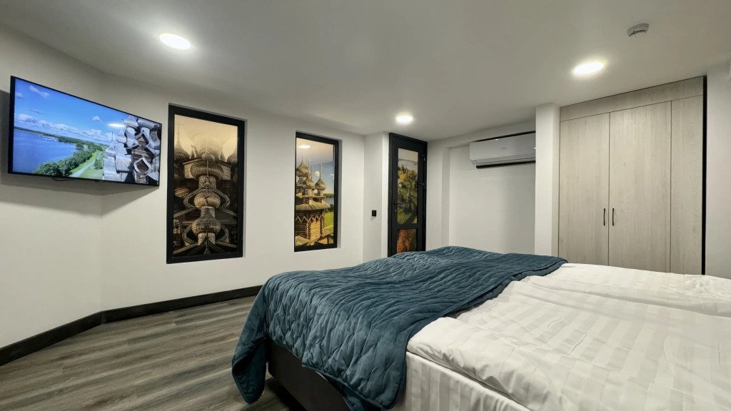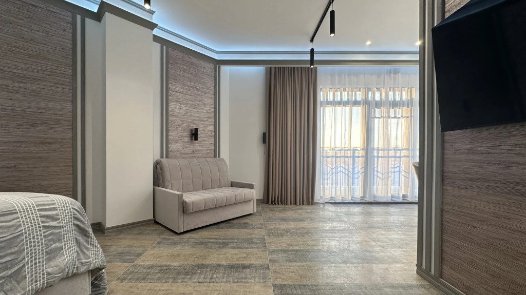 В номере гостей ждут телевизор и халат. Оснащение зависит от выбранной категории номера.