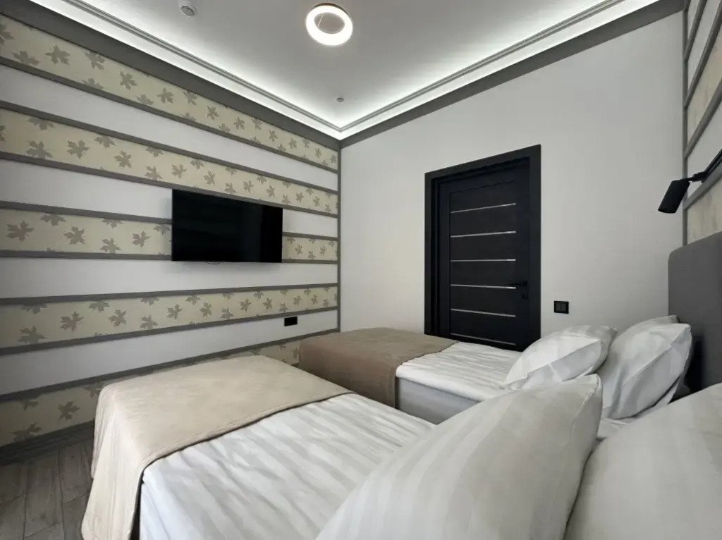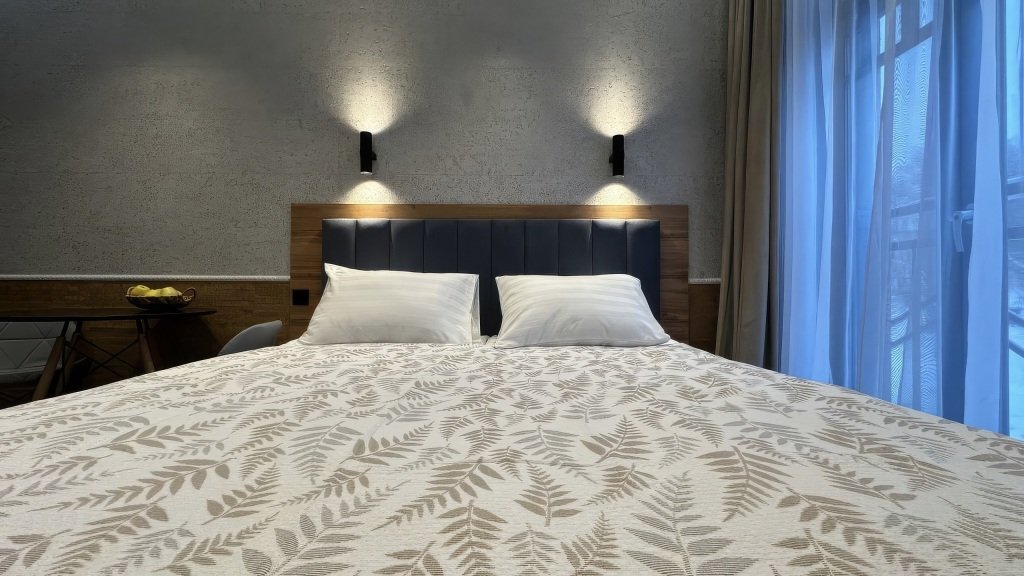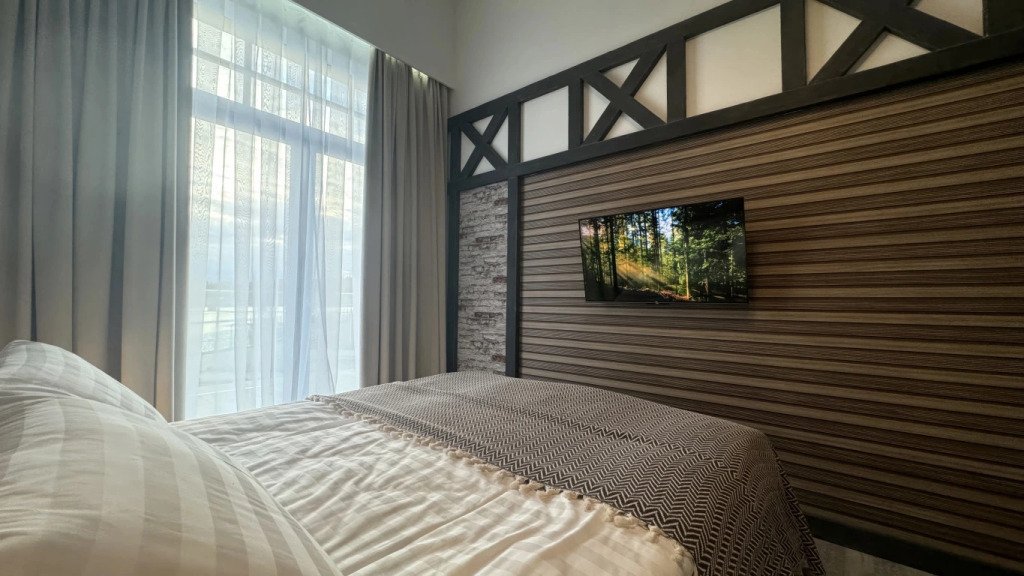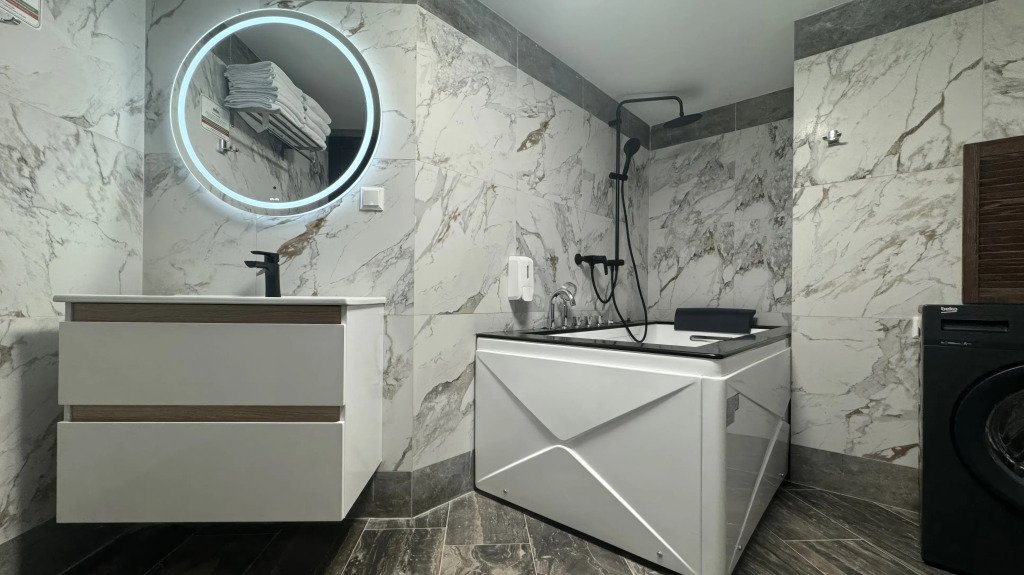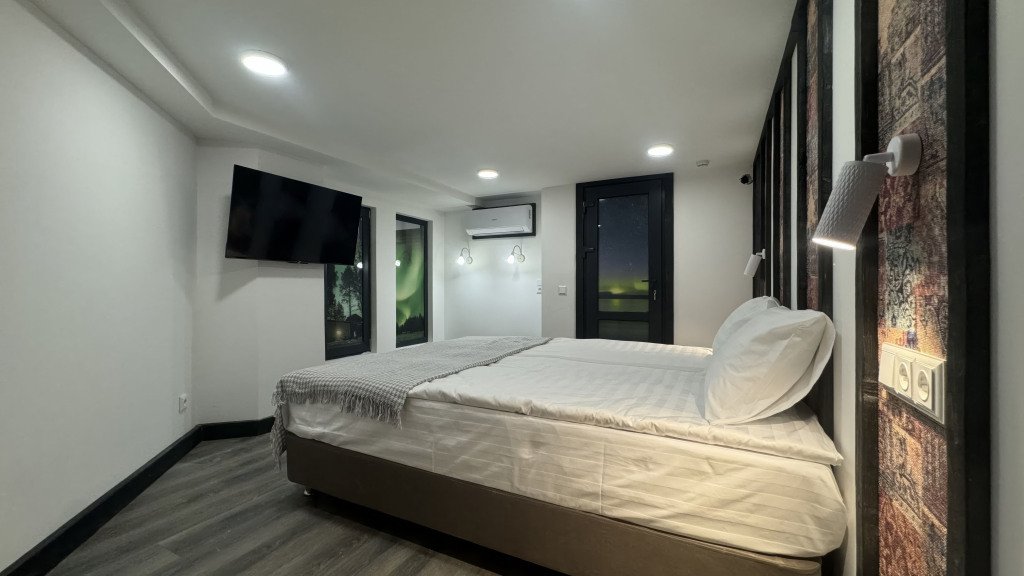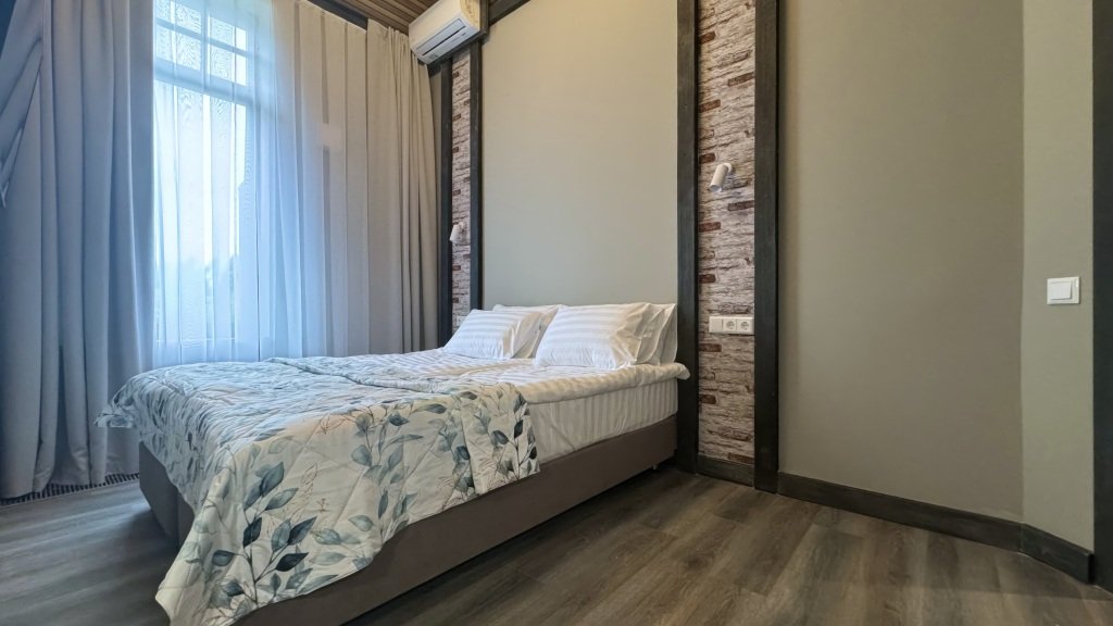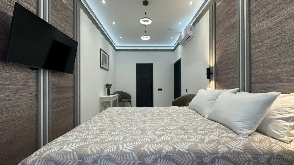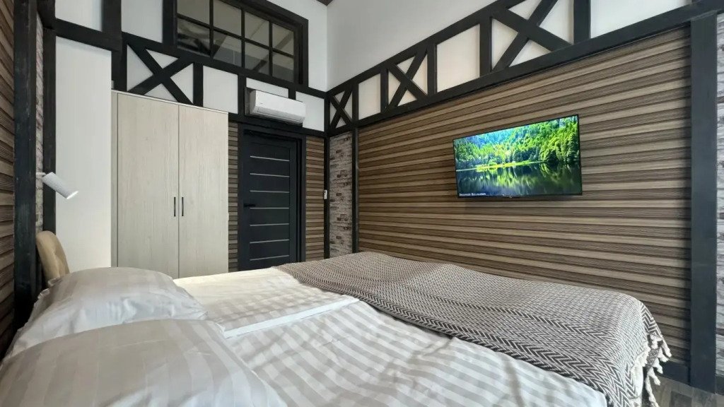 В номере гостей ждут телевизор и халат. Оснащение зависит от выбранной категории номера.