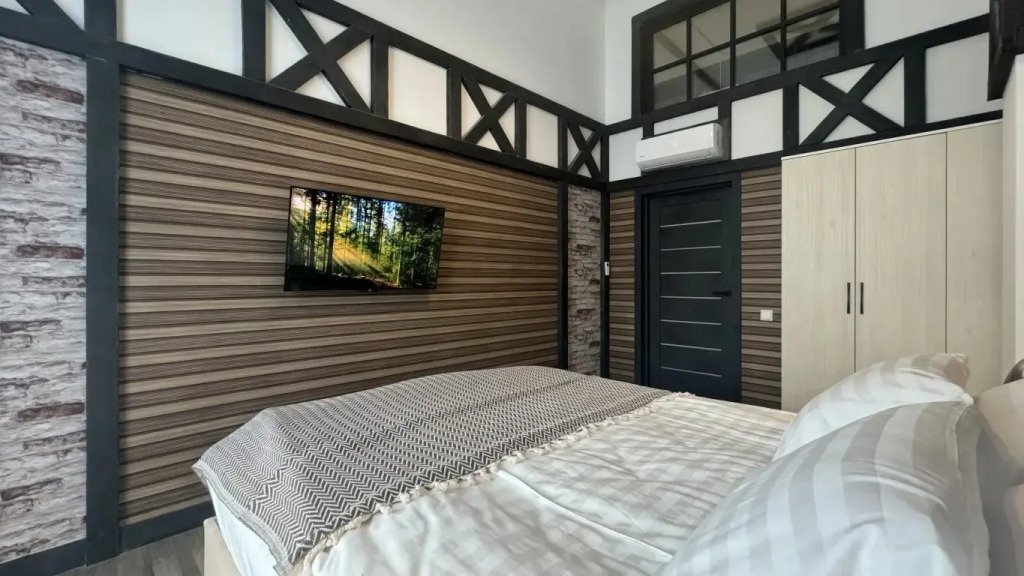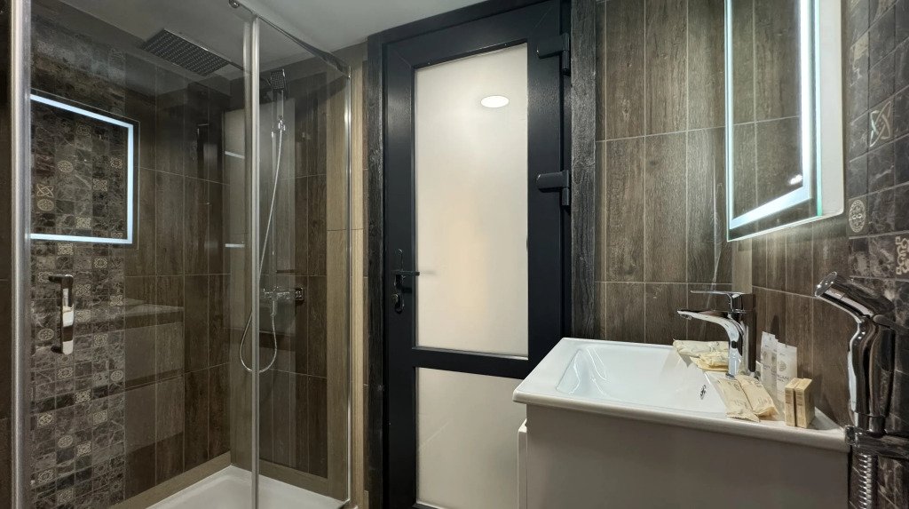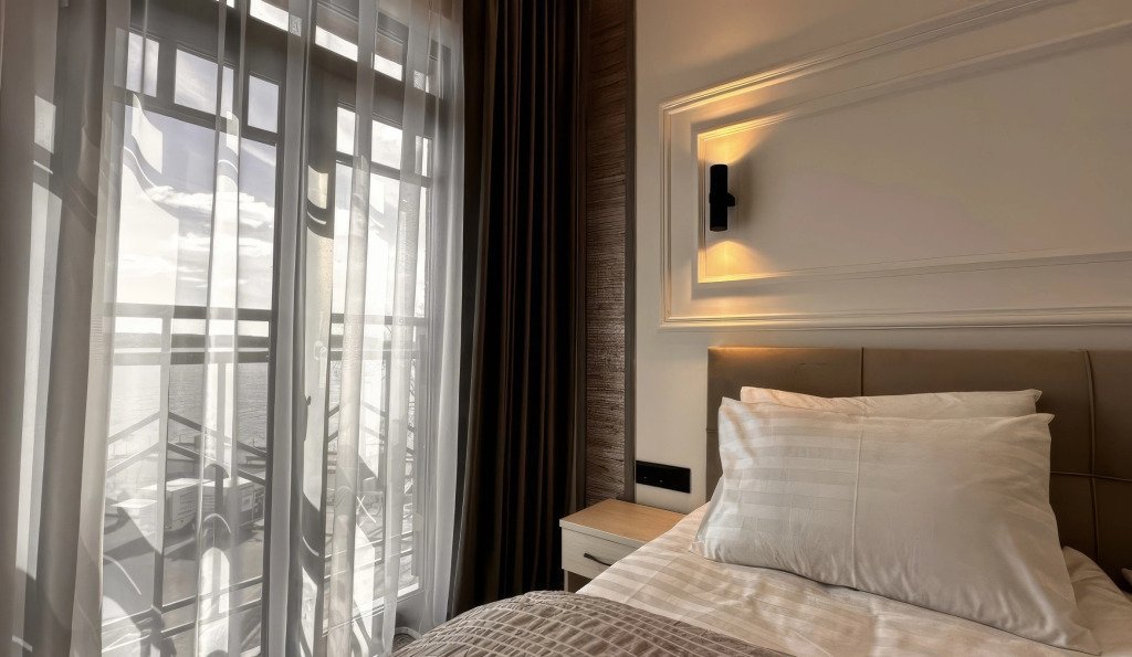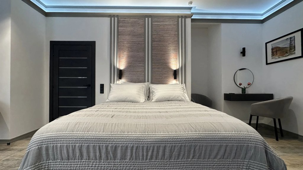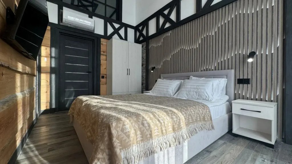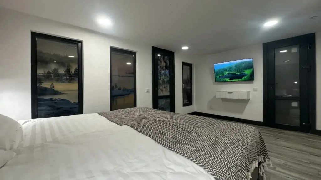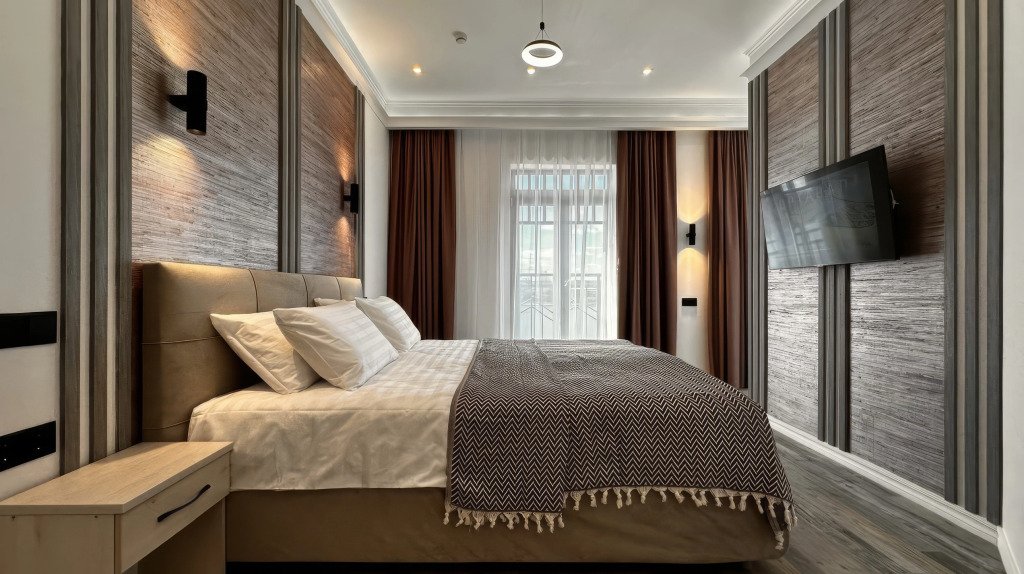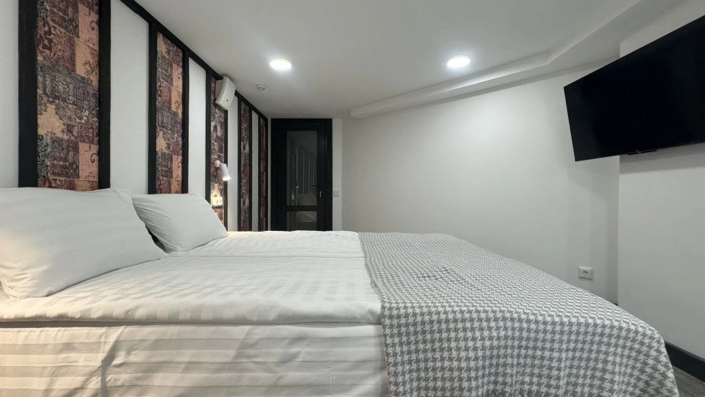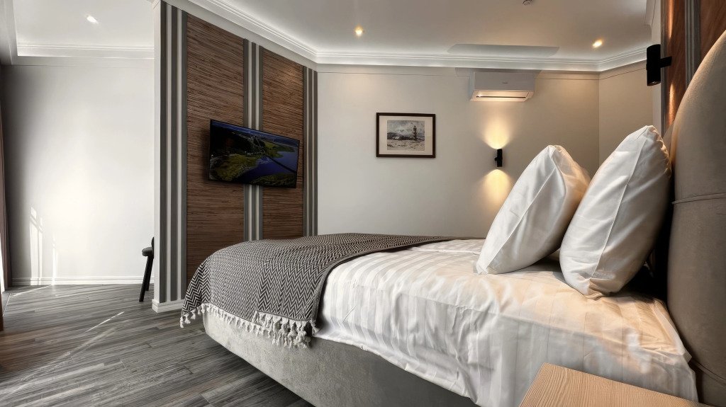 В номере гостей ждут телевизор и халат. Оснащение зависит от выбранной категории номера.
