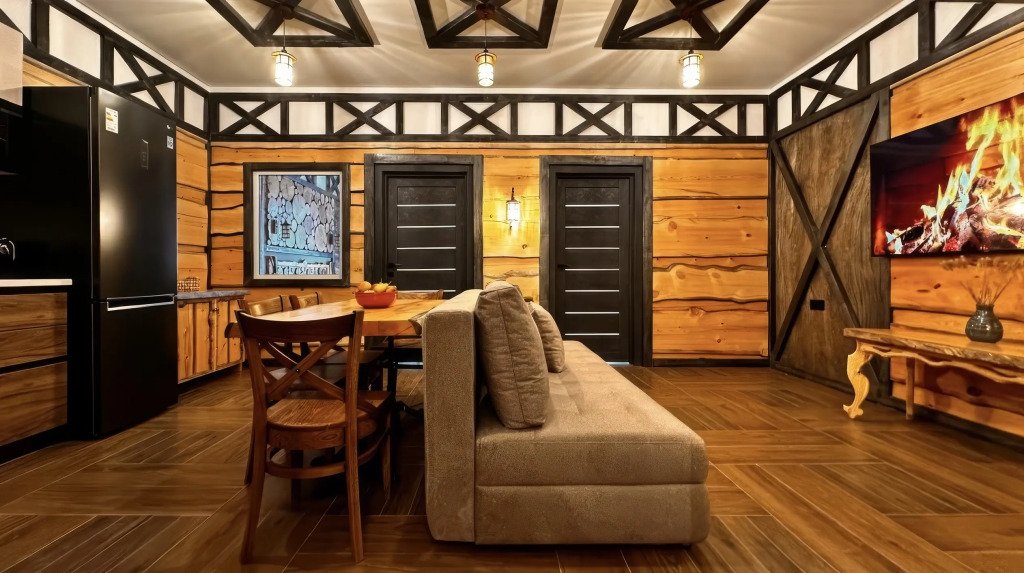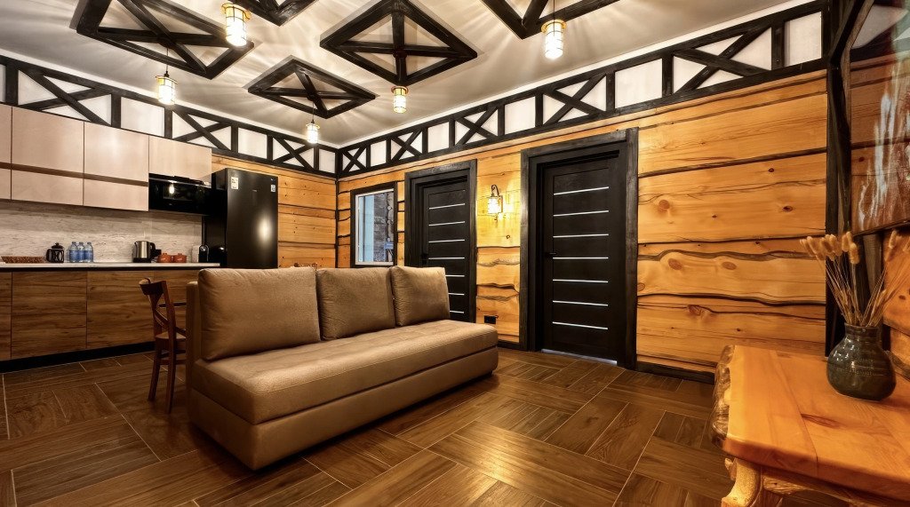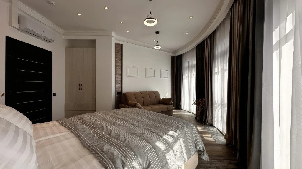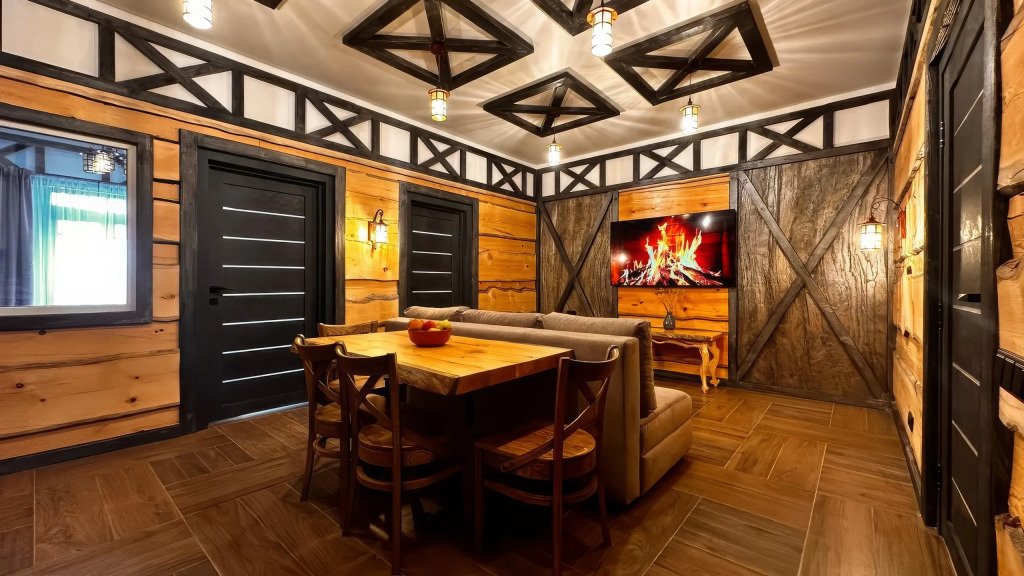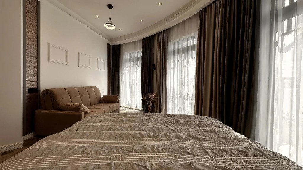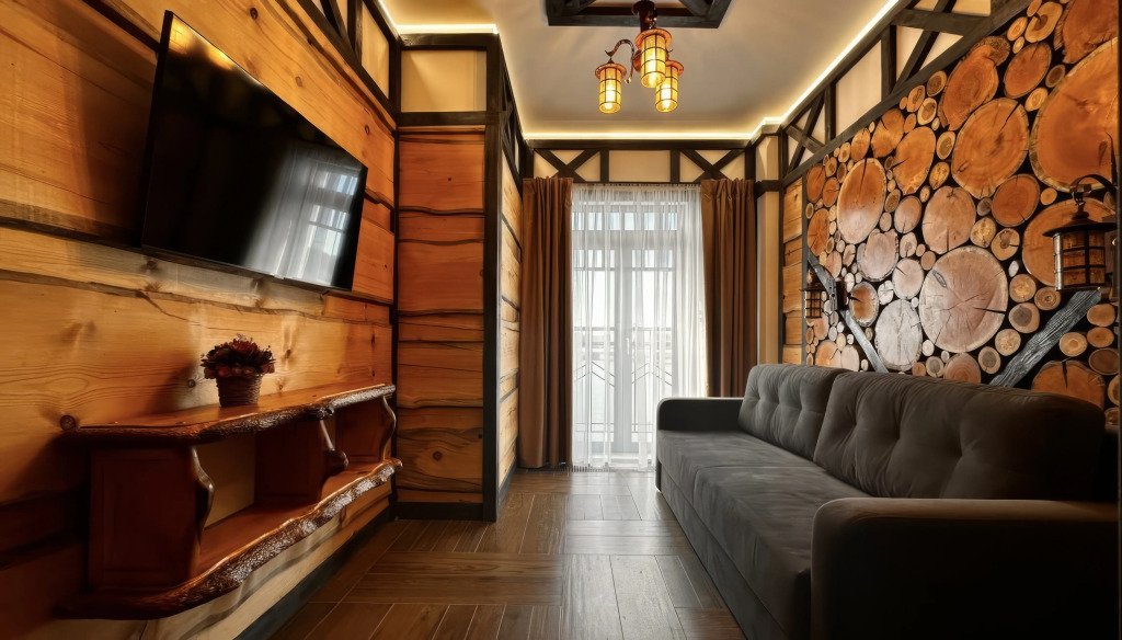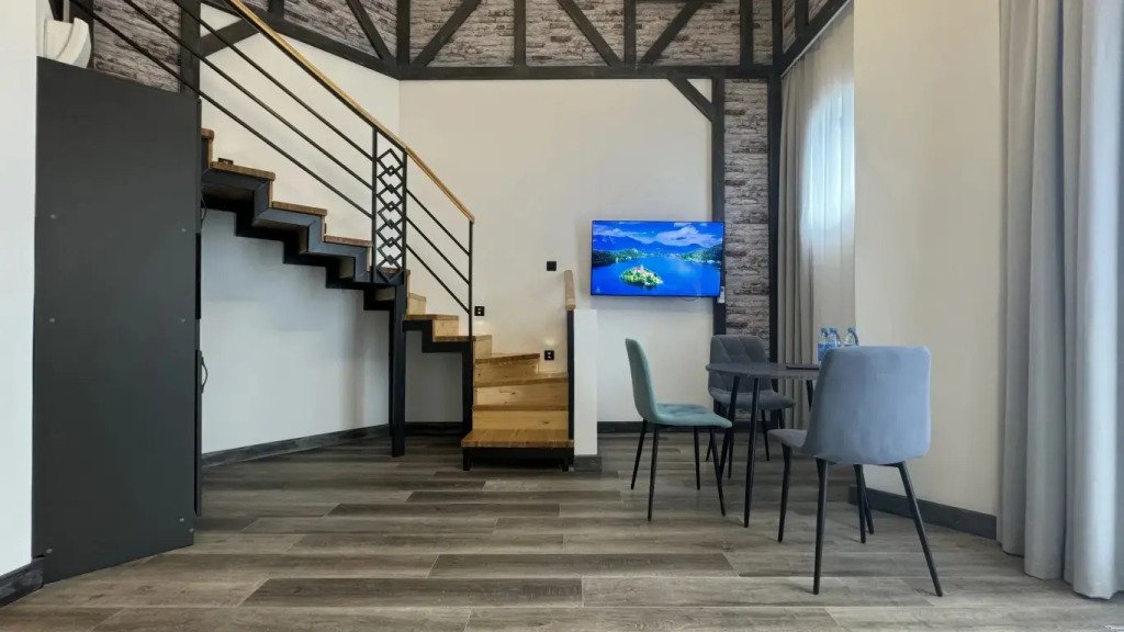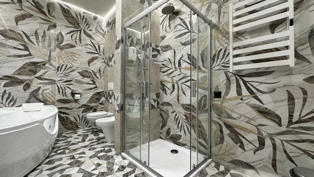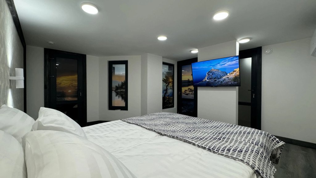 В номере гостей ждут телевизор и халат. Оснащение зависит от выбранной категории номера.