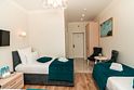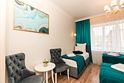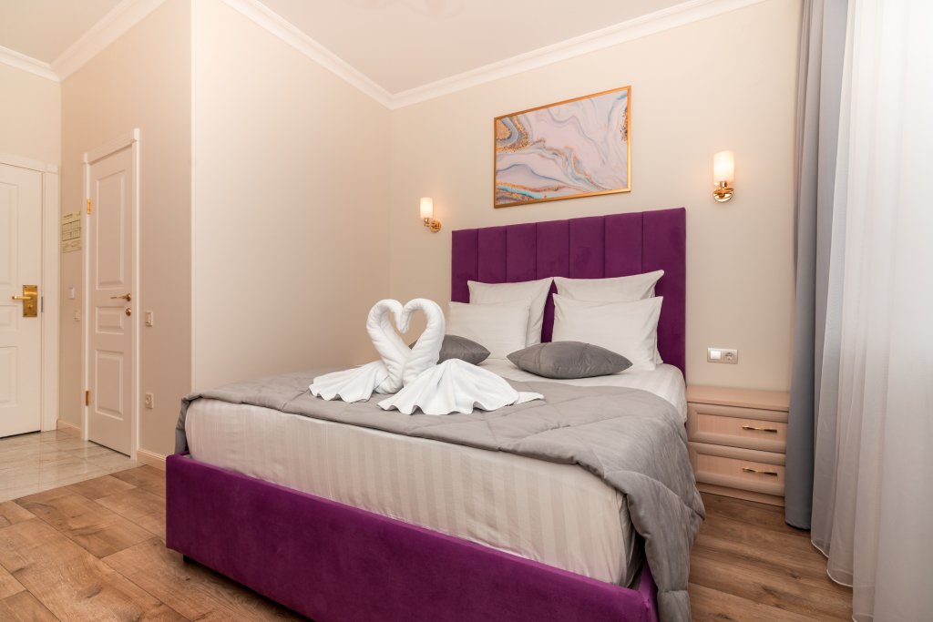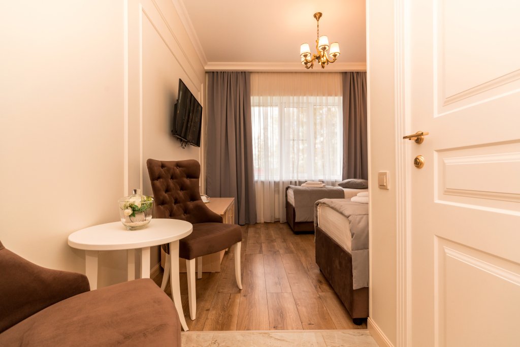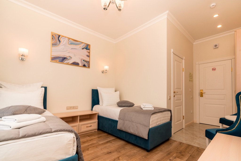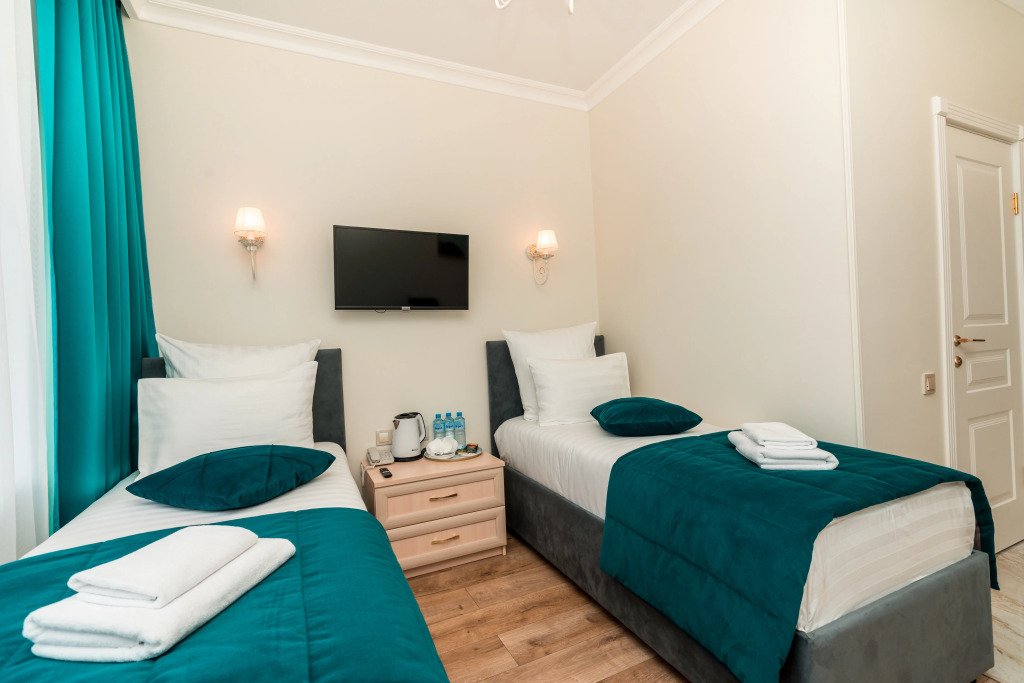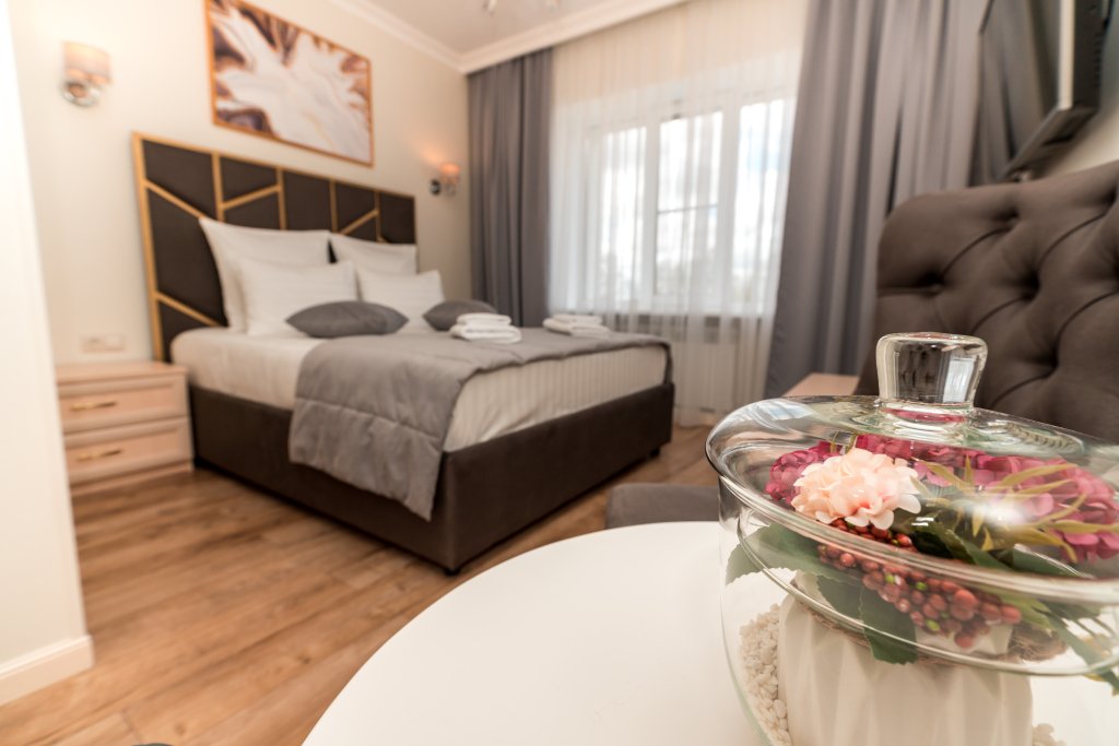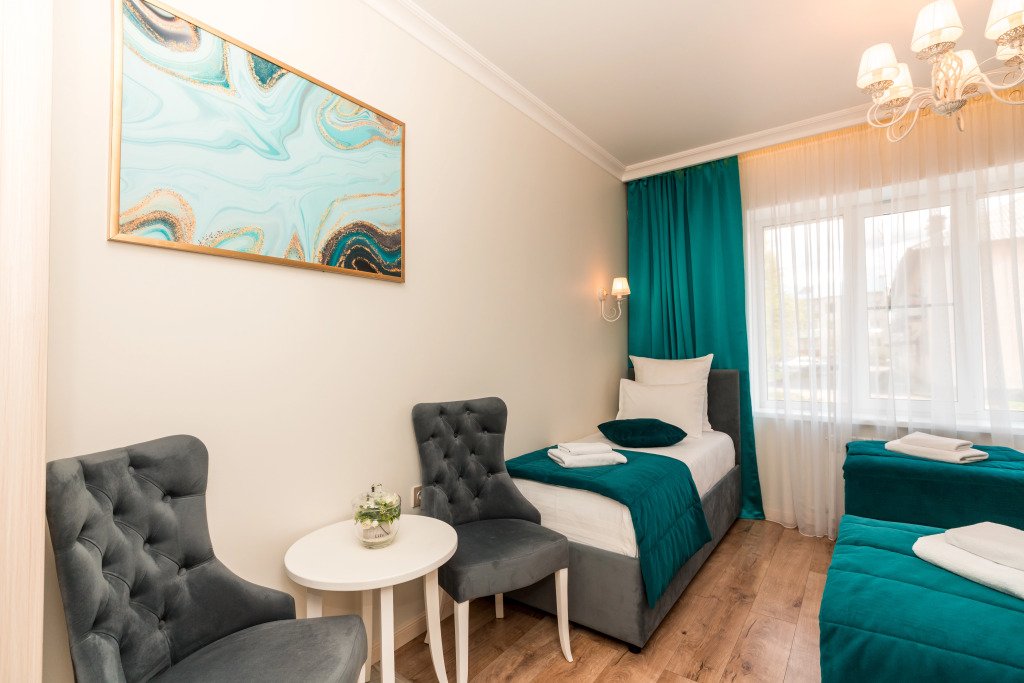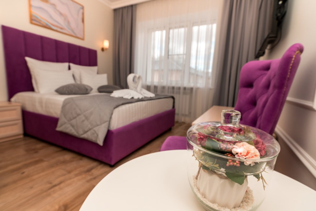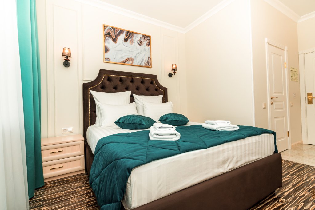 В отеле тридцать один номер. В каждом номере для проживания есть: телефон, TV, Wi-Fi, чай, кофе, фен, питьевая бутилированная вода, халат и тапочки, индивидуальный набор косметики для душа, два кресла и столик.