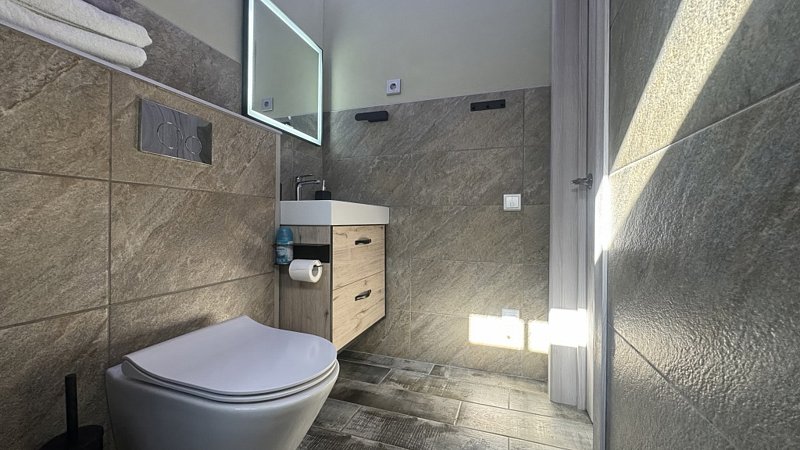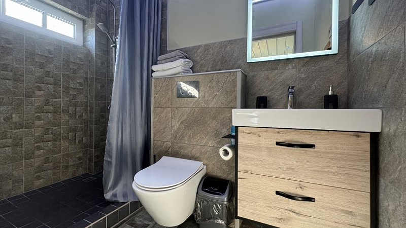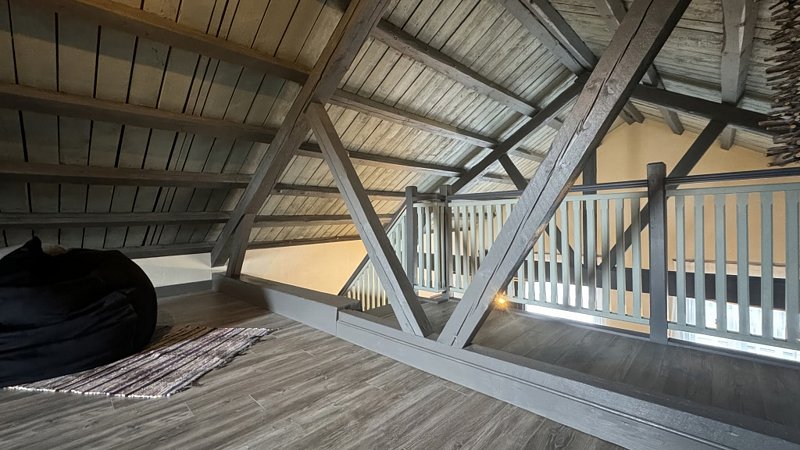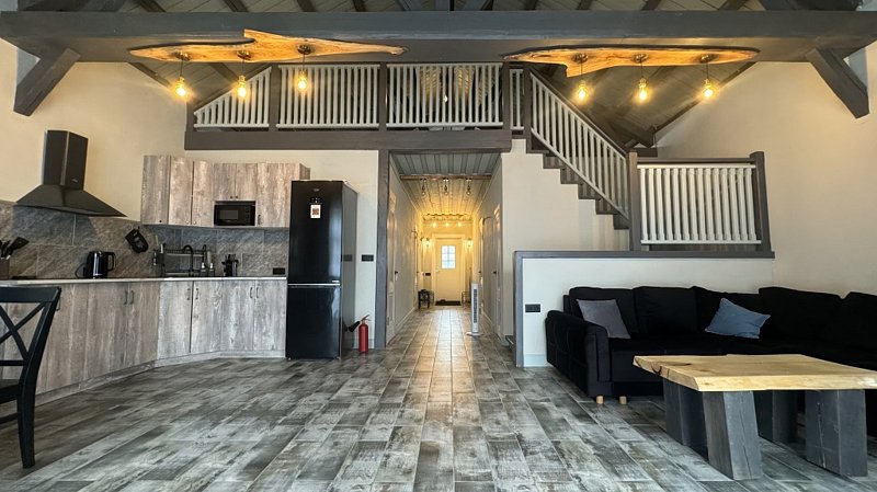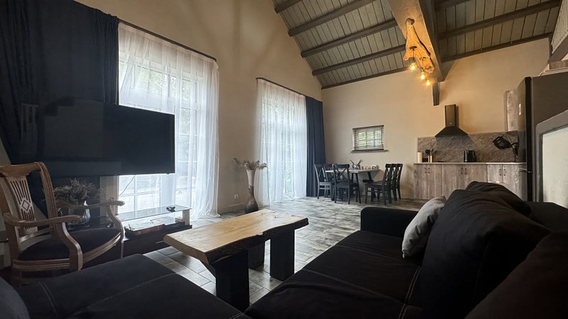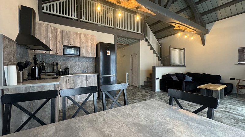 Аутентичный дизайн и архитектурные решения создают комфортную атмосферу в доме. Большая и просторная гостиная идеально подходит для отдыха и посиделок. кухня оборудована всей необходимой техникой. Второй этаж – это большая зона для отдыха, медитации или веселых развлечений. Две раздельные спальни оборудованы деревянными двухспальными кроватями с ортопедическими матрасами и собственными санузлами.