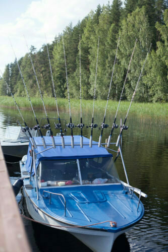 Оснащение — эхолот, снасти, дождевики.