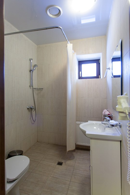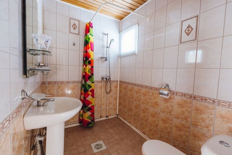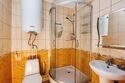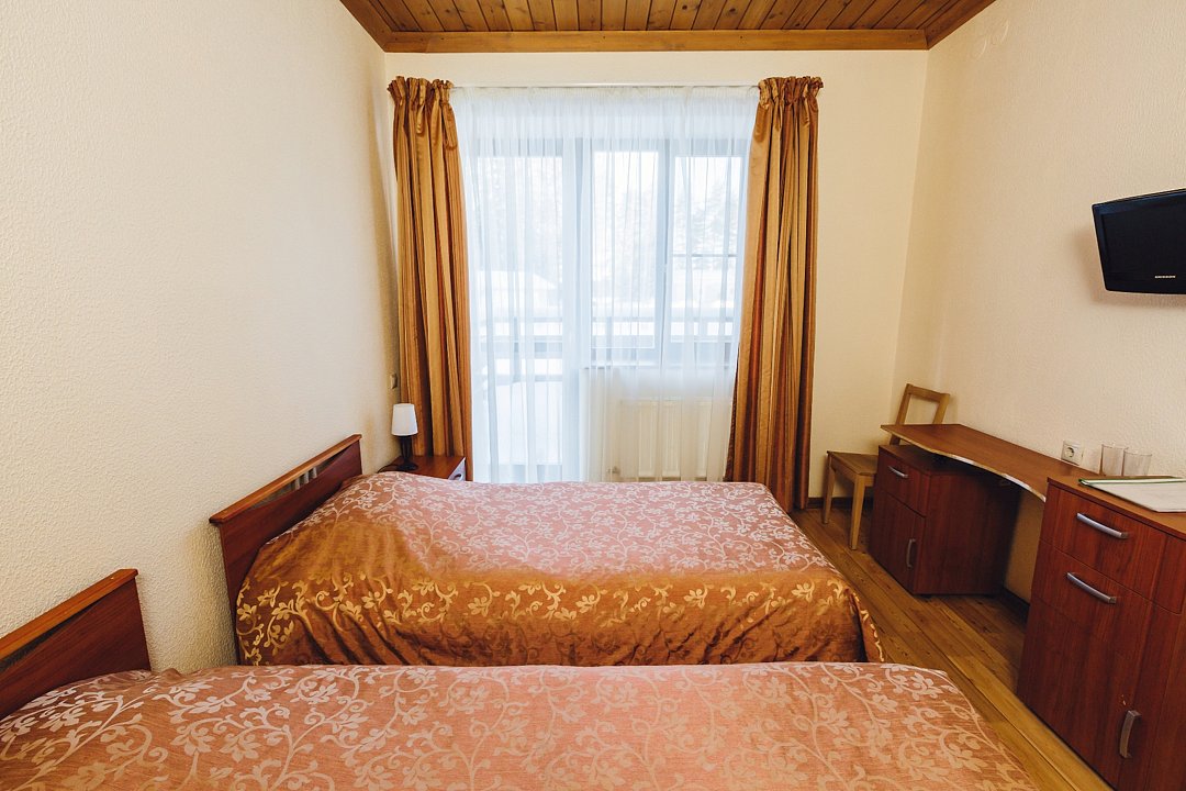 В номерах: тамбур с двустворчатым шкафом-купе, две кровати, две тумбочки, два стула, журнальный столик, настенные и настольные осветительные приборы, телевизор, предметы интерьера. В каждом номере – туалетные комнаты: душ, унитаз, умывальник, зеркало.