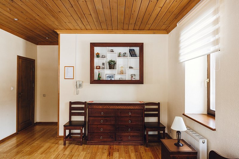 - мебель в номере из натурального дерева (сосна),