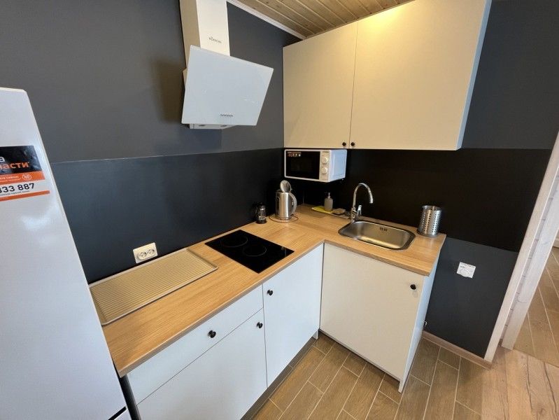 Дом оборудован всем необходимым для комфортного круглогодичного проживания: тёплые полы, полноценная кухня, санузел с душем и стиральной машиной, скоростной доступ в интернет.
