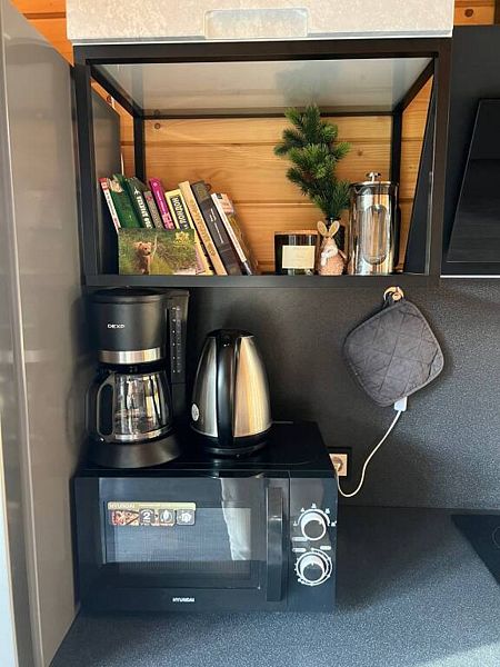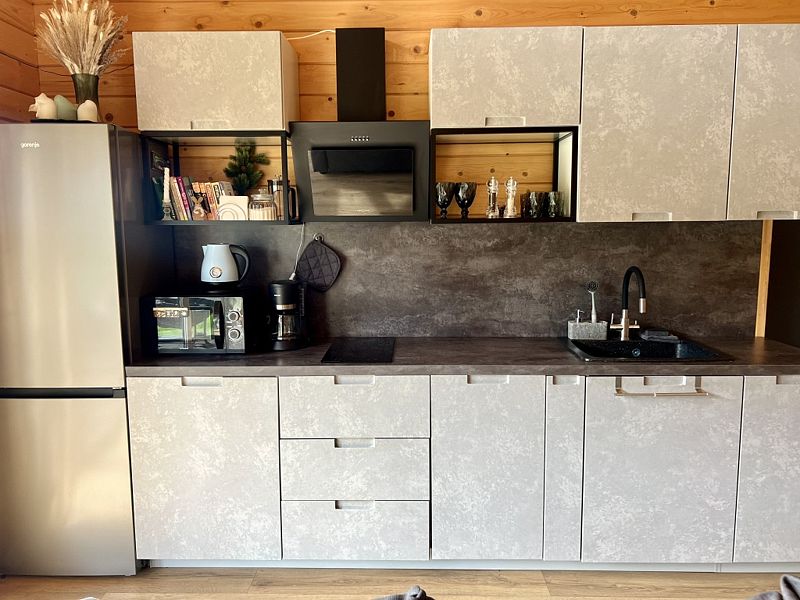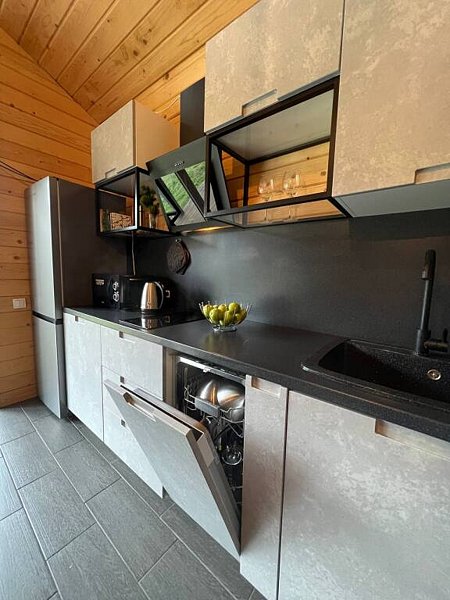 - обеденная зона и кухня со всем необходимым для приготовления пищи.