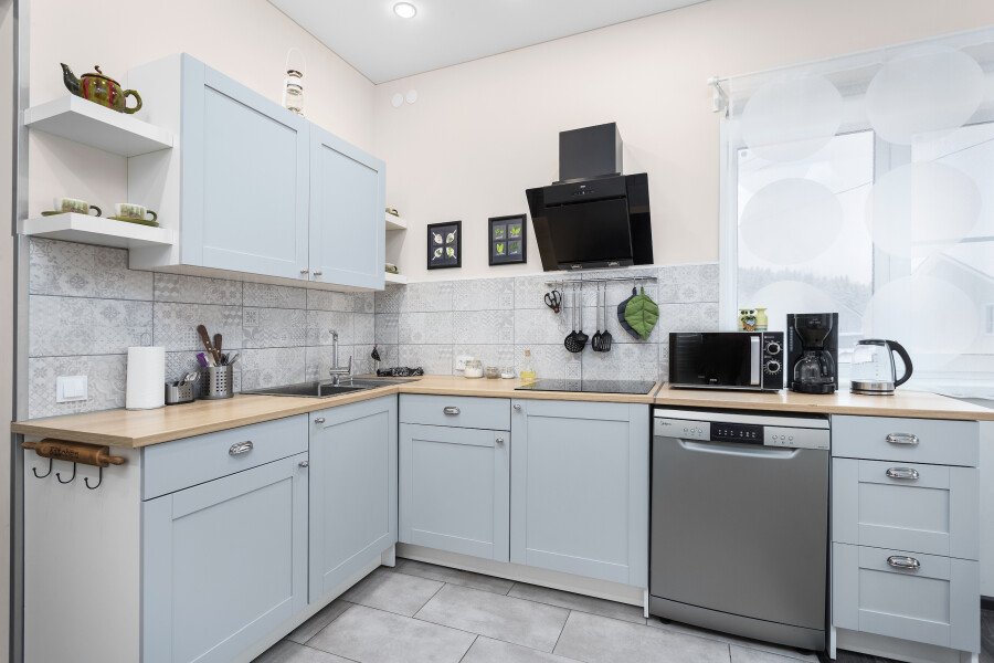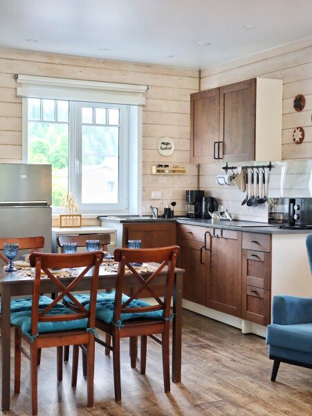 Дом оснащен современной бытовой техникой и мебелью, что обеспечивает комфортное проживание. Есть wi-fi, спутниковое телевидение, настольные игры и игрушки для детей. Отопление происходит с помощью водяного теплого пола, температуру в доме Вы всегда сможете отрегулировать с помощью термо-датчика.