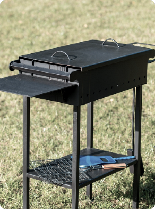 Мангал с навесом и освещением, шампура, решётка для барбекю.