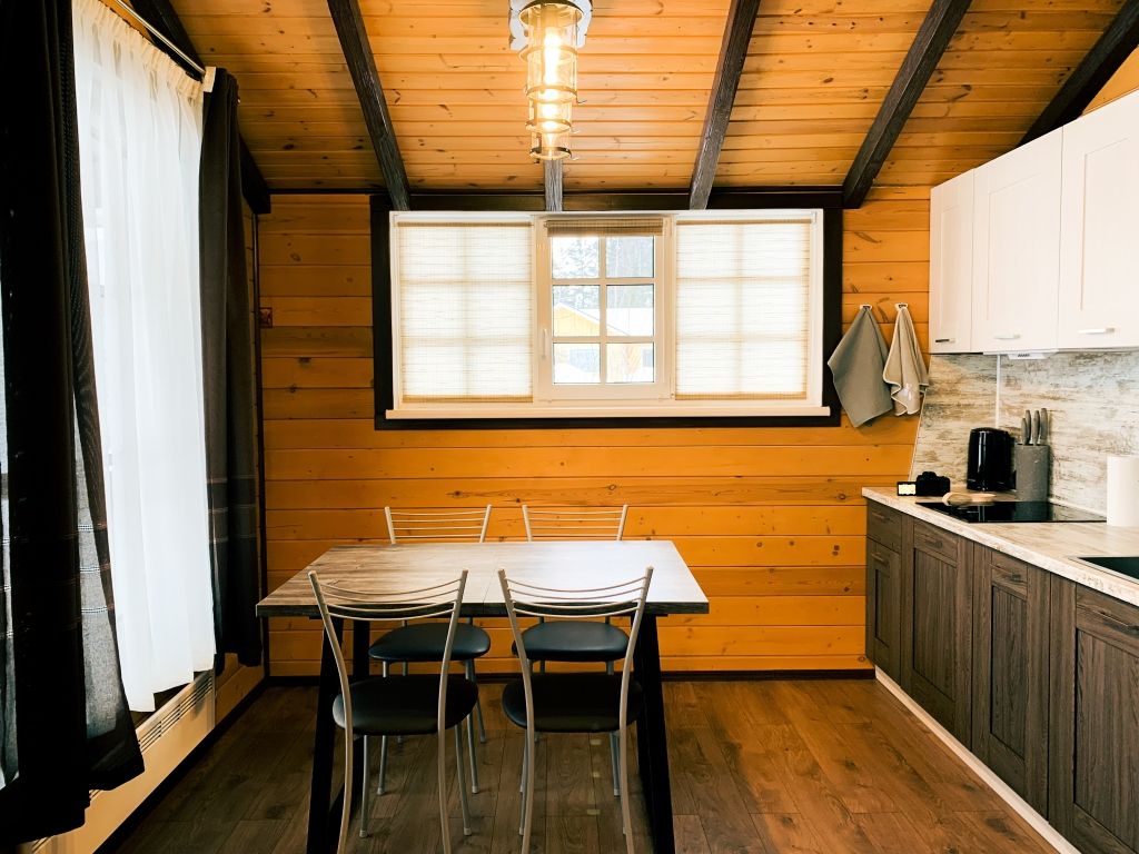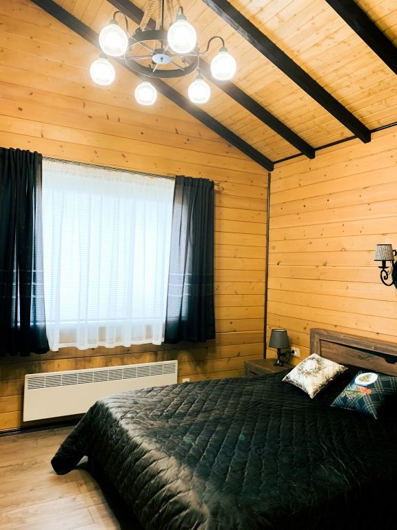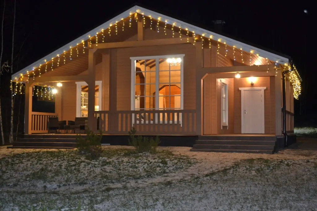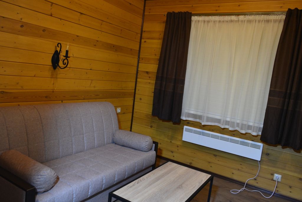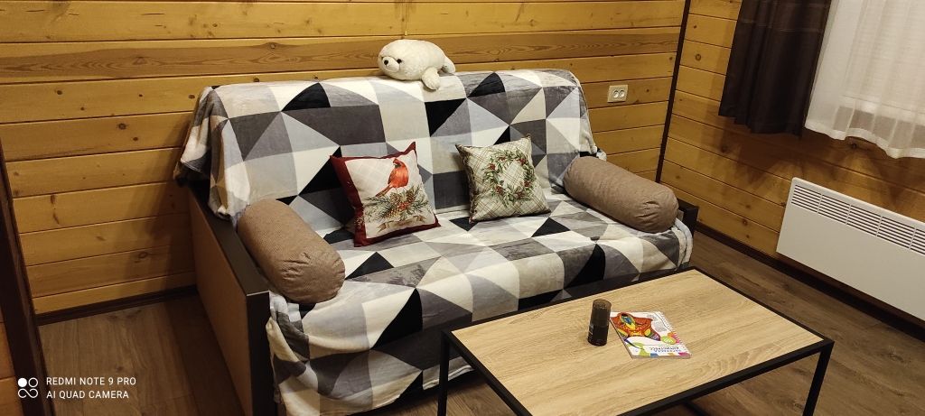 В доме 2 комнаты и гостиная, совмещенная с кухней. 4 основных спальных места (в первой спальне 2-сп. кровать, во второй — 2-сп. диван) + 2 дополнительных (в гостиной на 2-сп. диване).