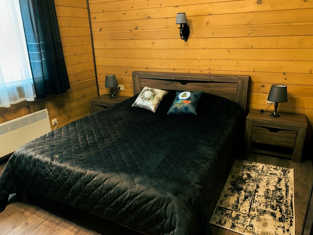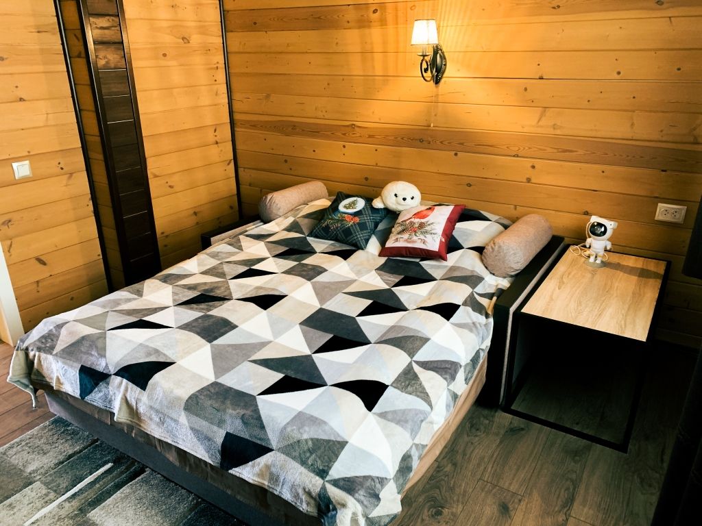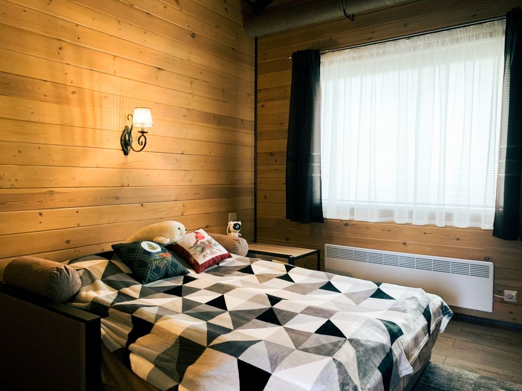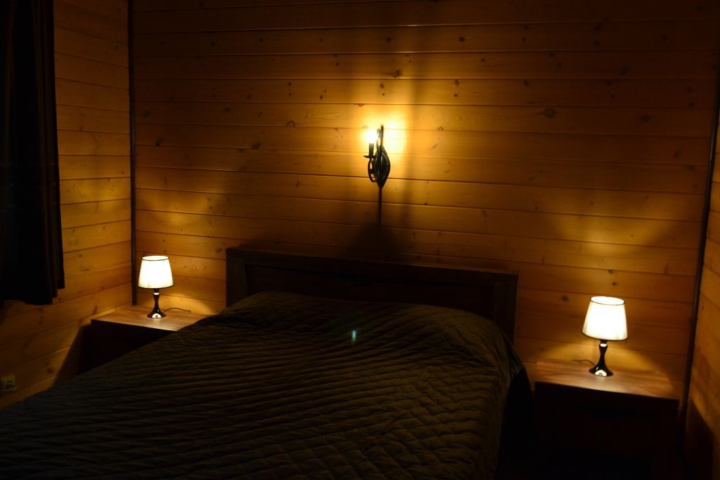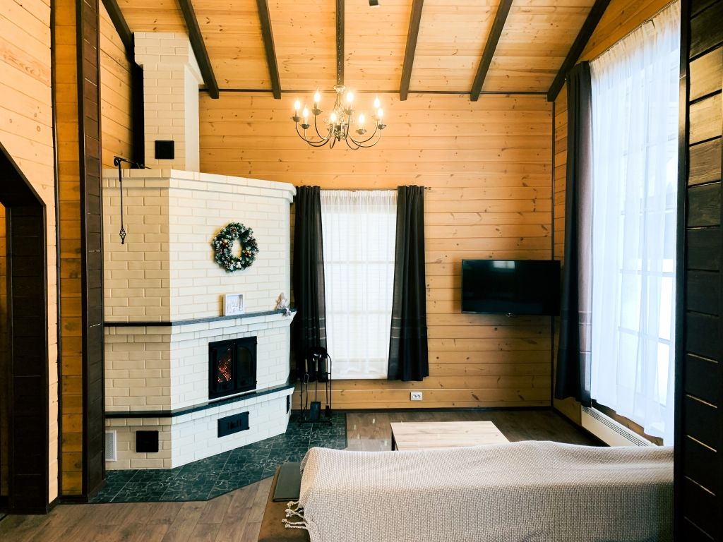 В доме 2 комнаты и гостиная, совмещенная с кухней. 4 основных спальных места (в первой спальне 2-сп. кровать, во второй — 2-сп. диван) + 2 дополнительных (в гостиной на 2-сп. диване).