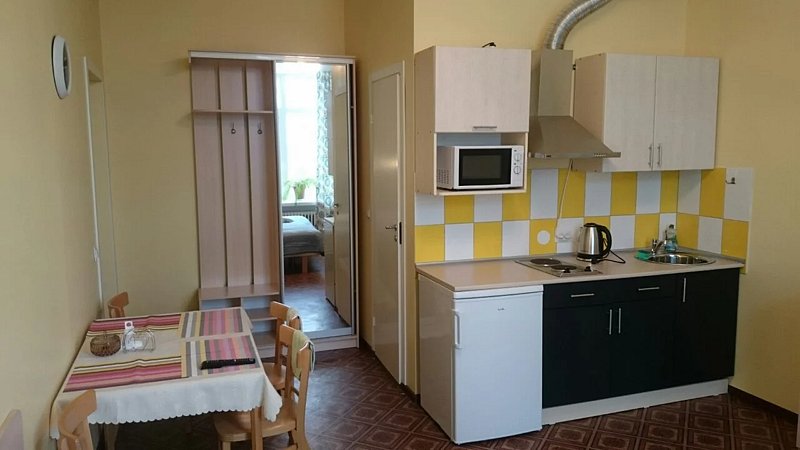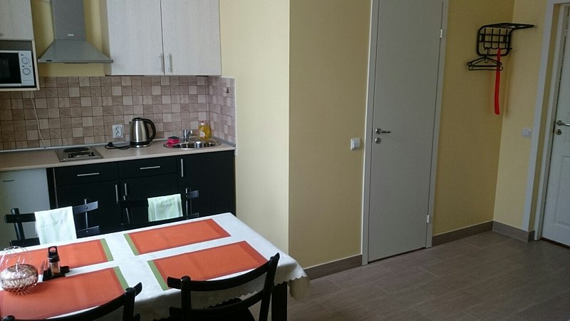 Апартаменты-Студия, площадью 25 м², максимальная вместимость 3 человека. В апартаментах имеется все необходимое для комфортного проживания: кухня, полностью оборудованная для приготовления пищи (плита, микроволновая печь, холодильник, чайник, кофеварка, посуда), санузел, постельное белье, полотенца.