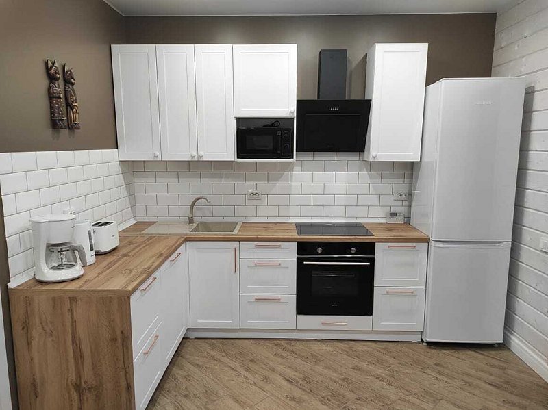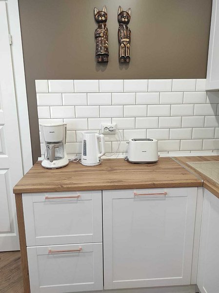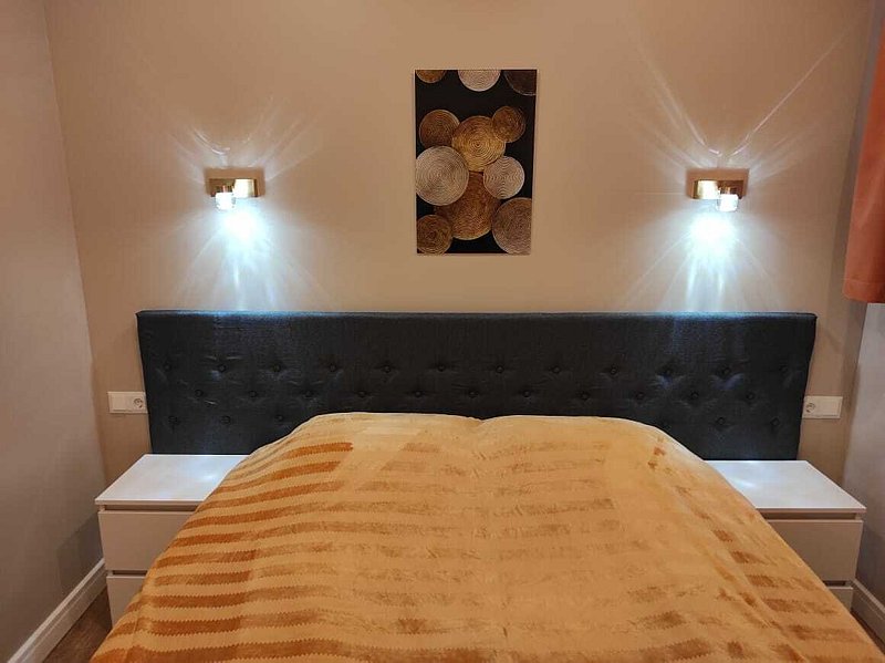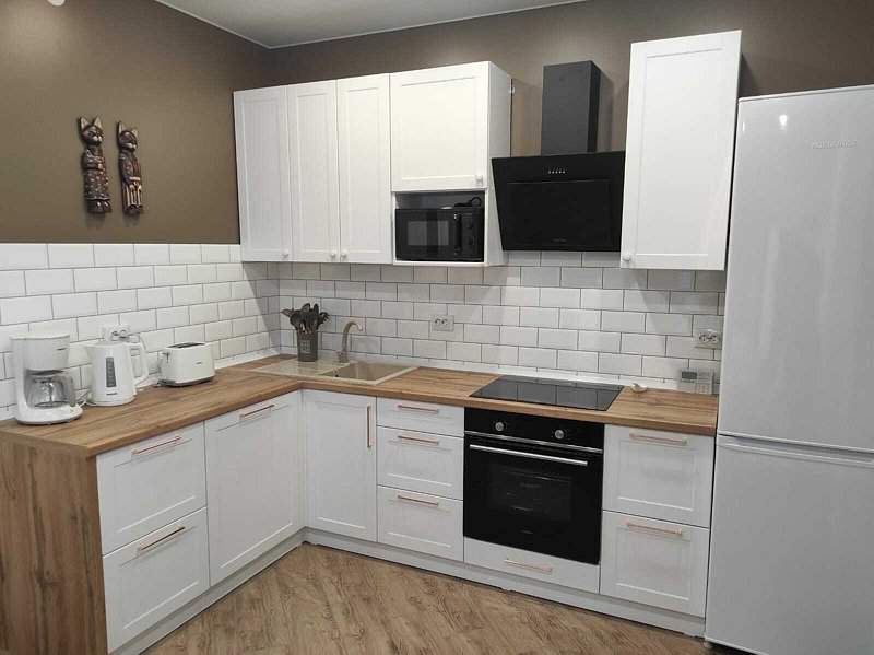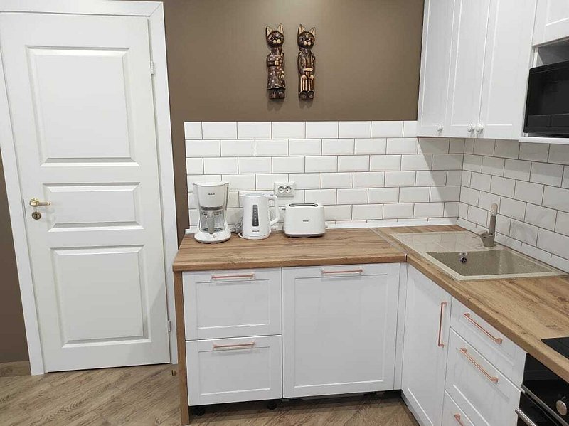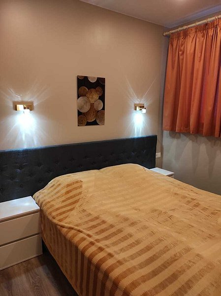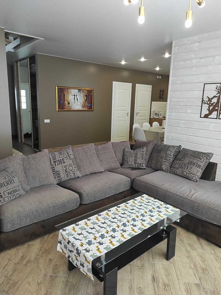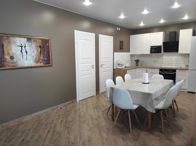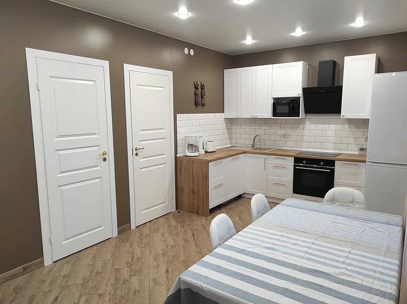 Апартаменты площадью 50 м², максимальная вместимость 4 человека. В апартаментах имеется все необходимое для комфортного проживания: кухня, полностью оборудованная для приготовления пищи (плита, микроволновая печь, холодильник, чайник, кофеварка, посуда), постельное белье, полотенца.