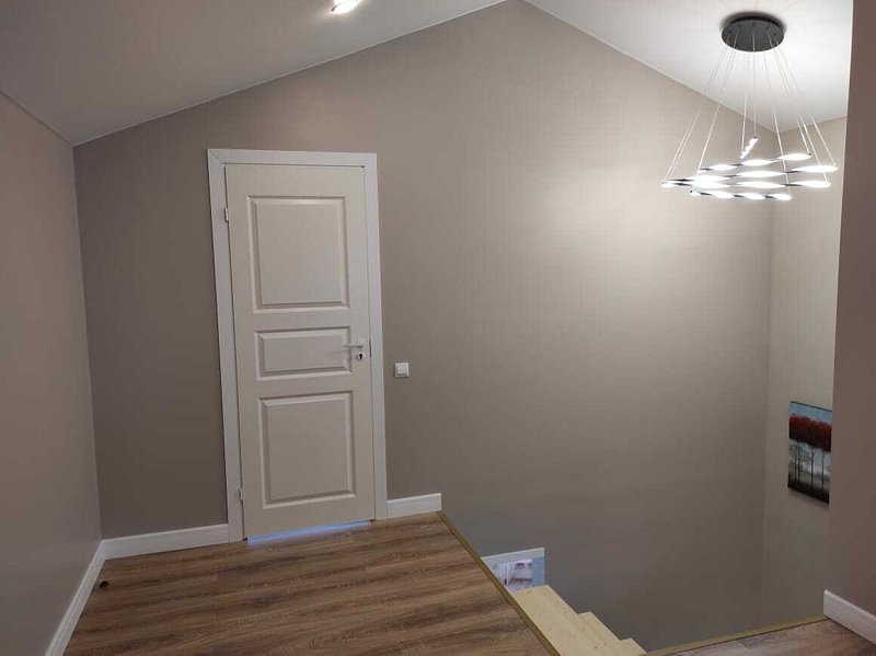 Две открытых террасы: 13 и 7 м² (одна на выходе из кухни, вторая – на выходе из сауны), в доме три санузла, большой зал с видом на озеро, кухня. Кухня в доме полностью оборудована импортной техникой для комфортного приготовления пищи (чайник, кофеварка, тостер, микроволновая печь, варочная панель, духовой шкаф, холодильник, посудомоечная машина), имеется вся необходимая посуда. В зале плазменный телевизор. Имеется парковка для 4 машин.