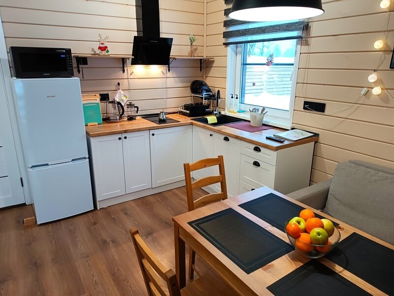 Уютный, теплый дом на берегу с двумя спальнями, санузлом и кухней.