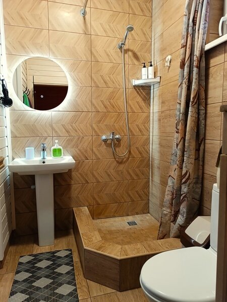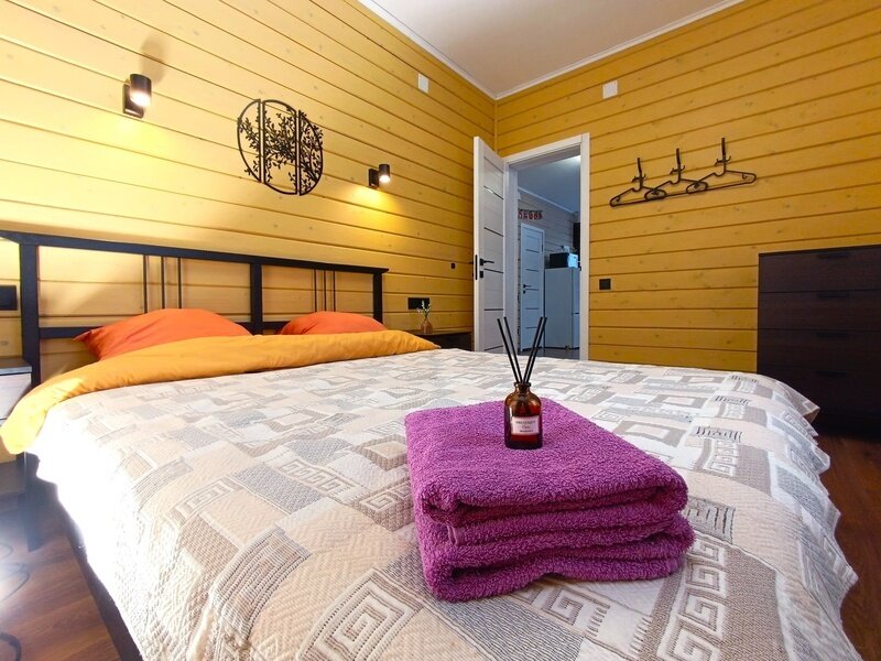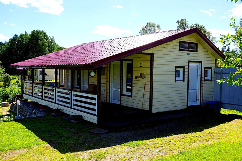 Дома площадью от 64 кв. м с двумя спальнями (4-5 спальных мест), одним санузлом, душевой, кухней со всей необходимой бытовой техникой.