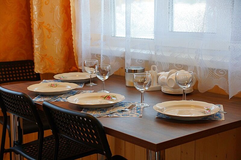 - набор посуды (тарелки, ложки, вилки, чашки, кастрюли, сковороды, салатница, рюмки, бокалы и т. д.).