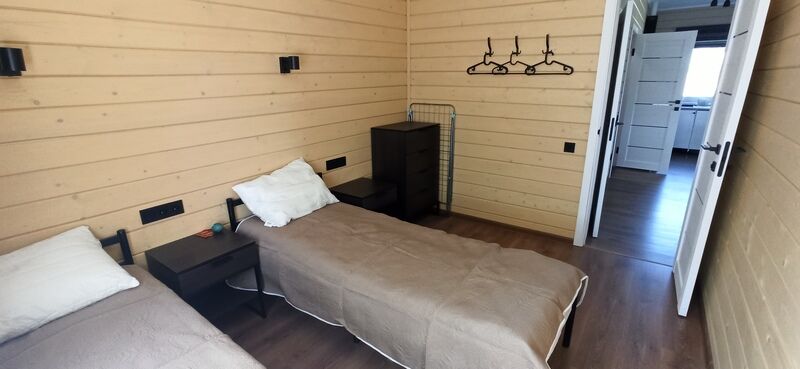 В доме 3 спальных места: 1 двуспальная кровать (200*160см), диван в общей зоне.