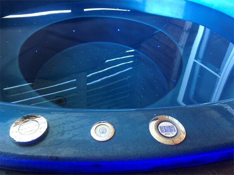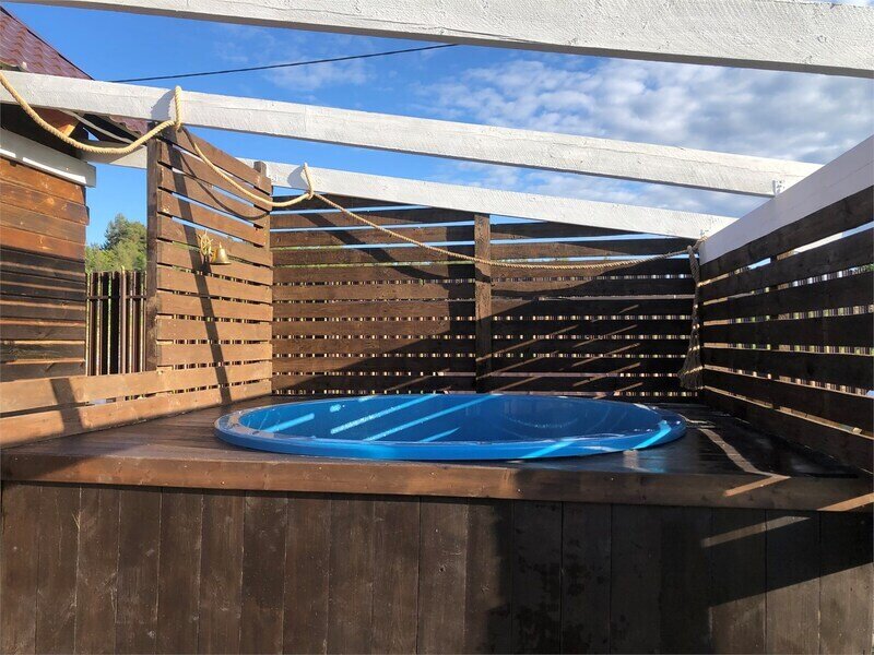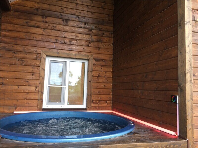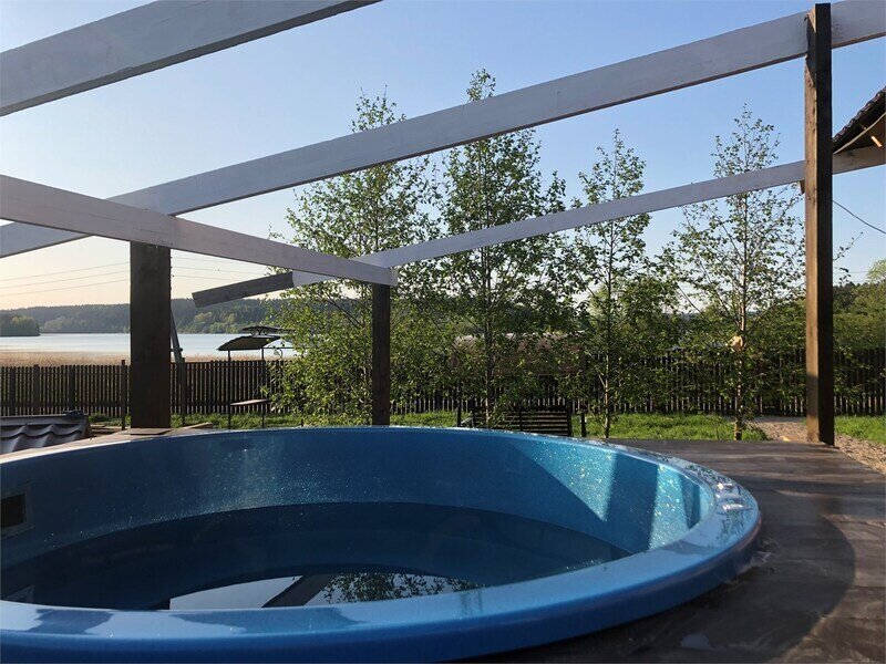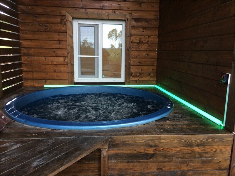 Тёплая купель на террасе с подводной и красивой ночной подсветкой, круглосуточно теплая и с пузырьками как в джакузи.