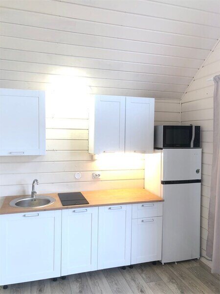 В доме есть спальня, гостиная, кухня полностью оборудована бытовой техникой ( холодильник, чайник, кофеварка, тостер, плита, СВЧ печь. Утюга нет.