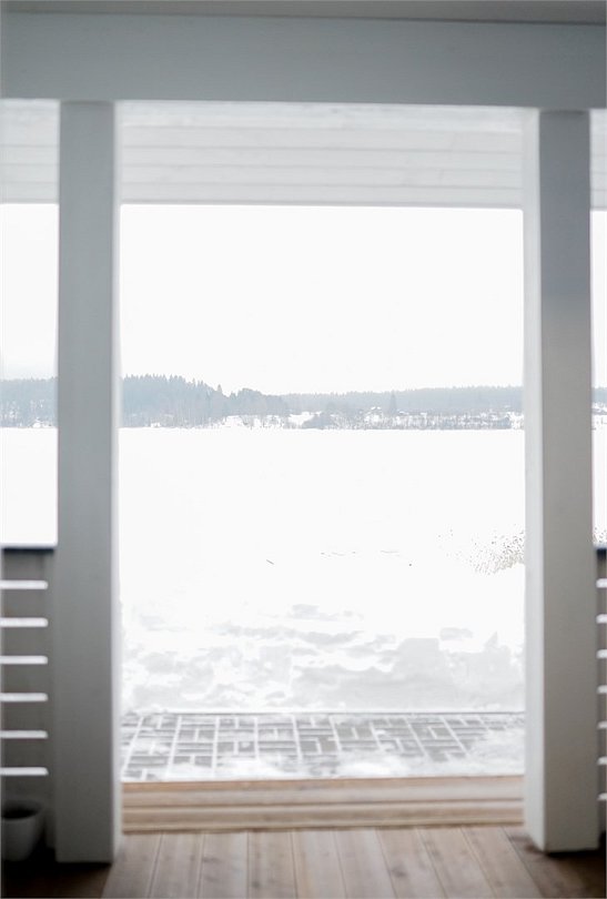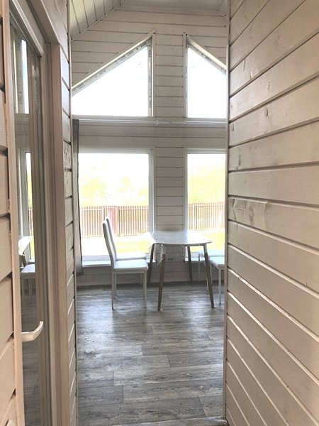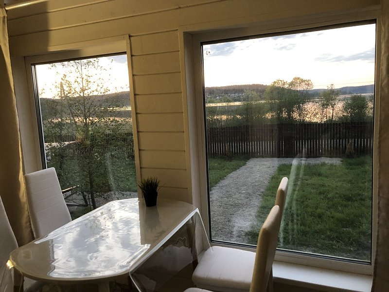 - Панорамное окно с видом на Ладожское озеро и посёлок Риеккалансаари;